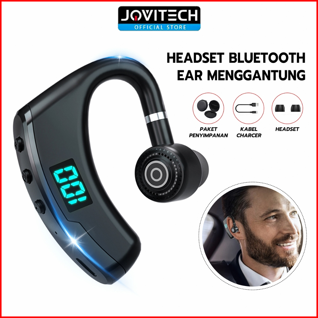 Jovitech Wireless Earphone Bluetooth 5.3 Ear Hook Single Headphone With Mic Handsfree Enc Sport Gaming Headset Suara Kua