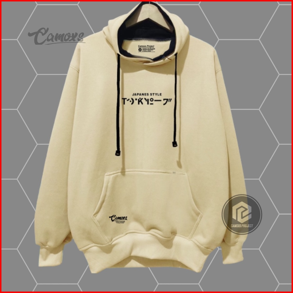 Hodie Sweater Pria Distro Camoxs Project Hoodie Oversize Cowok Cewek Warna Cream Tokyo Japanes Style Terlaris Suiter Hud