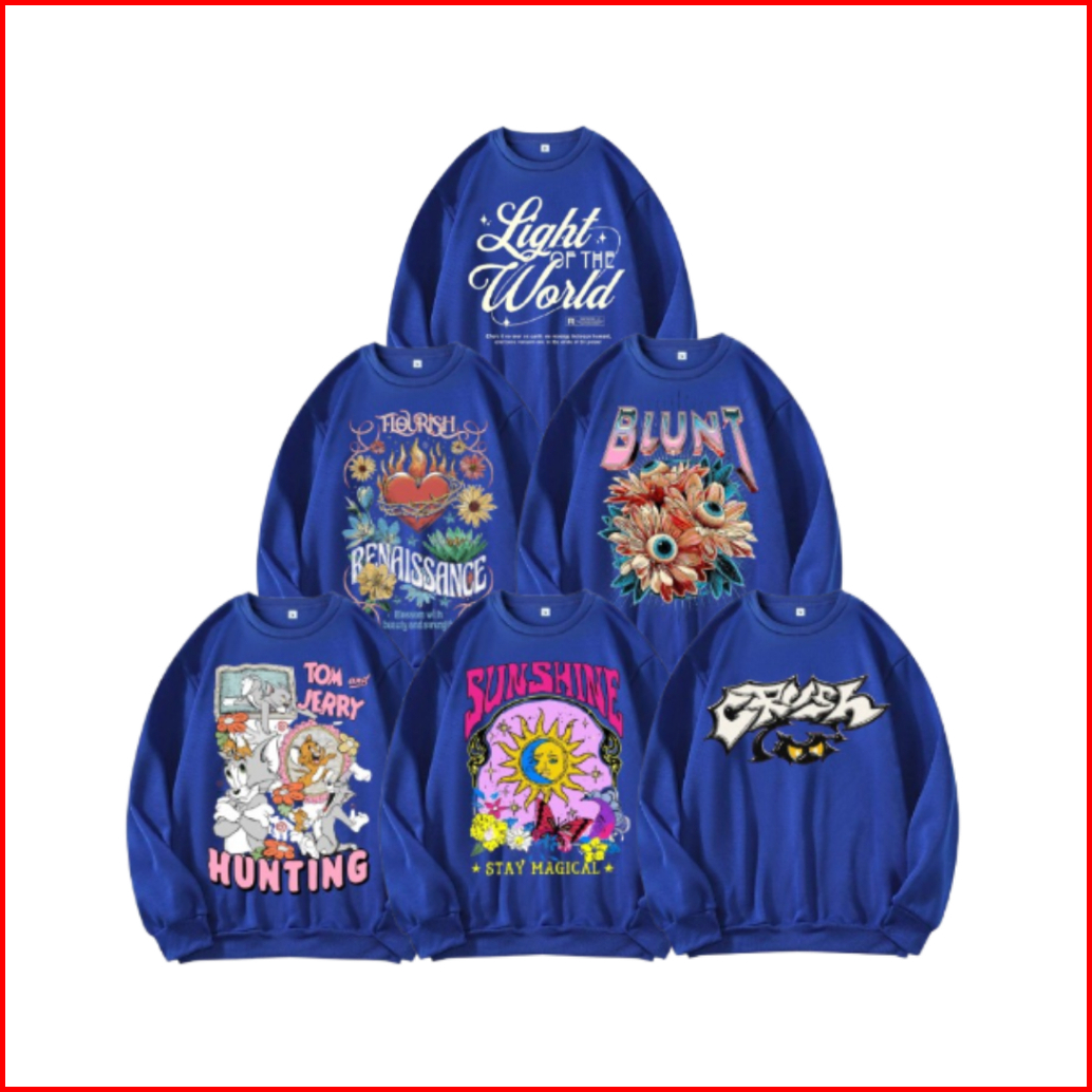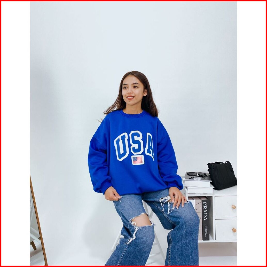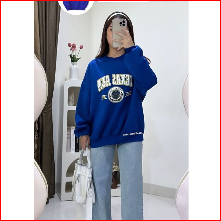 Sweater Crewneck Wanita Oversize Premium Warna Biru Elektrik