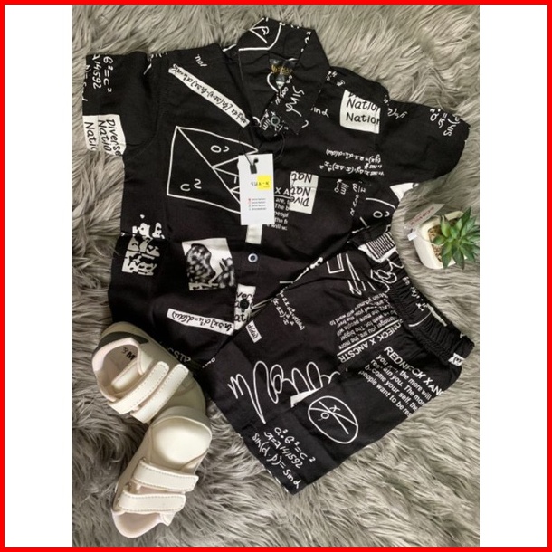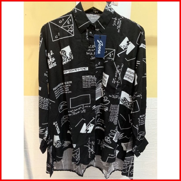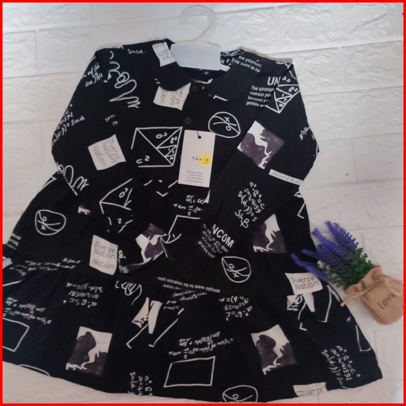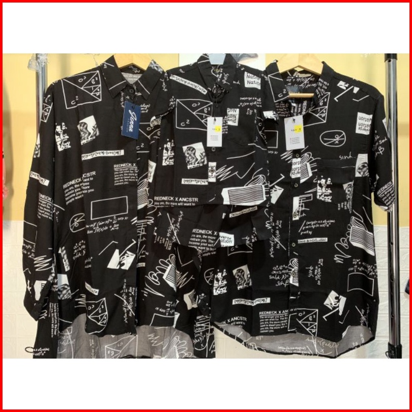 Couple Kemeja Ayah Ibu Dan Anak Motif Hitam Koran