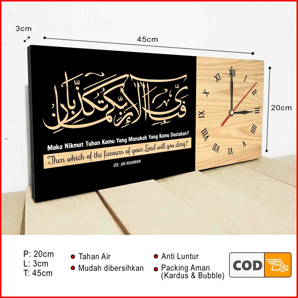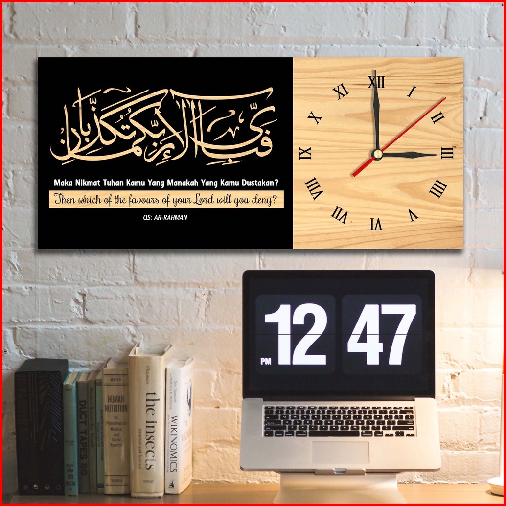 Jam Dinding Unik Islami Qs Ar-rahman Fabiayyi Ala Irobbikuma Tukadziban