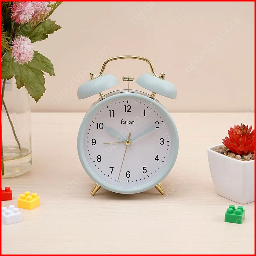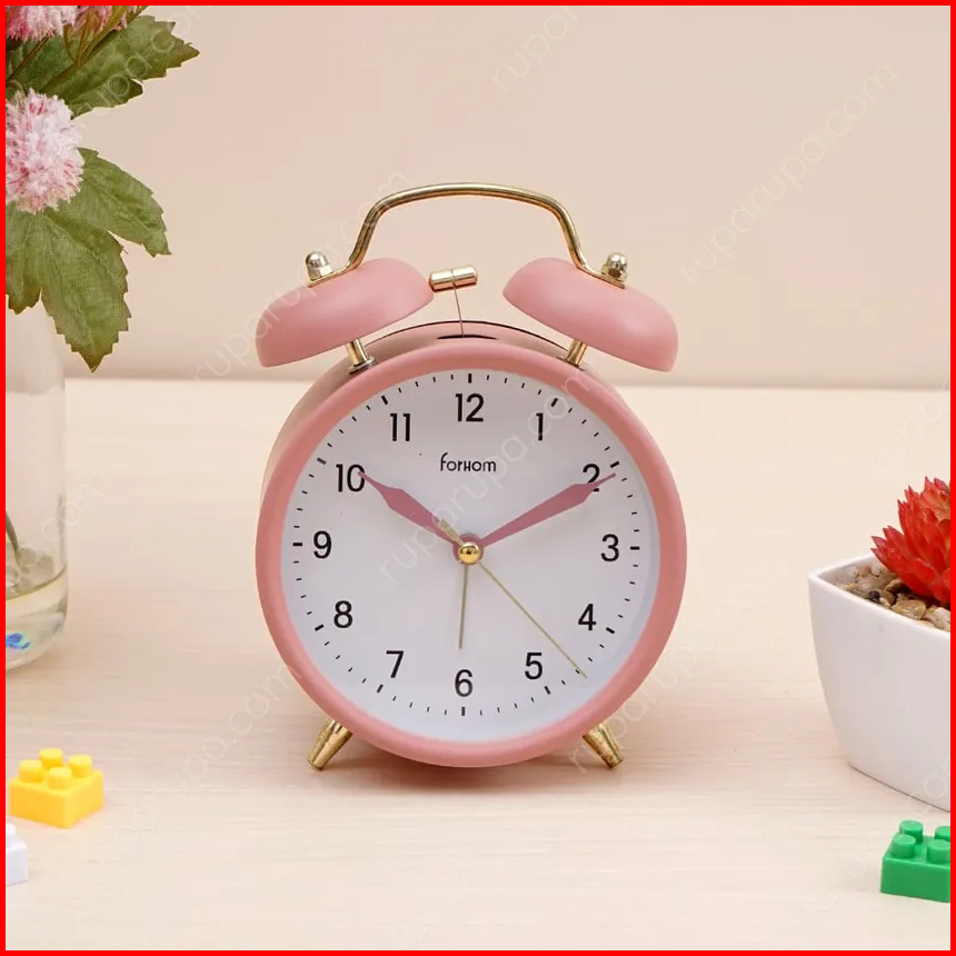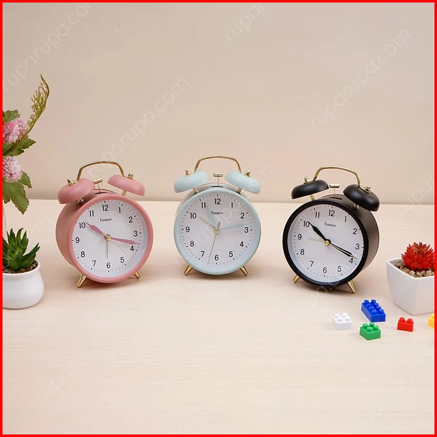 Azko Forhom Arthome Twin Bell Jam Weker Bell Alarm Jam Meja Pink Biru Hitam