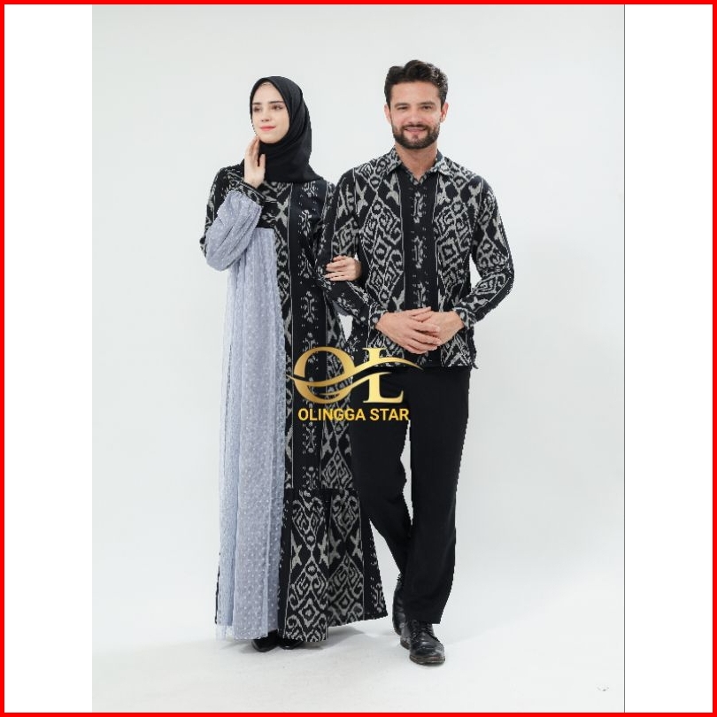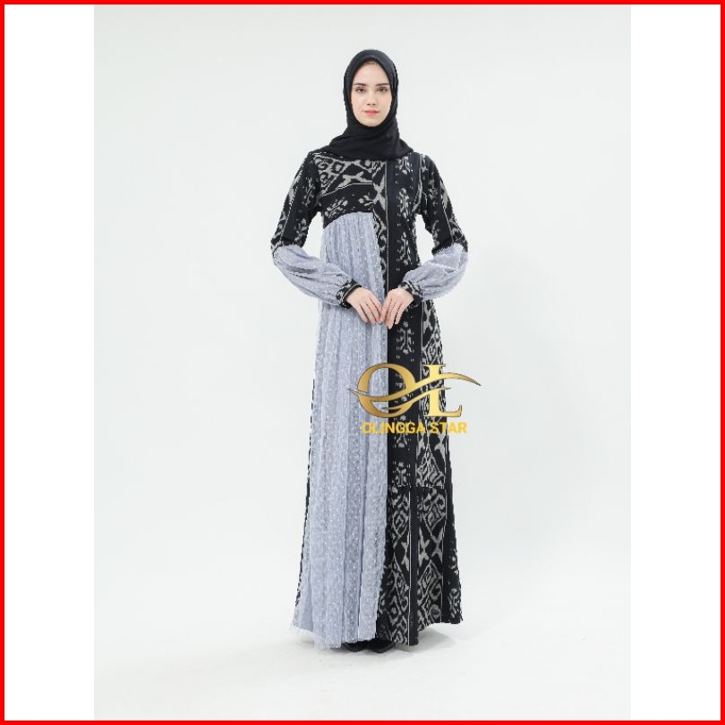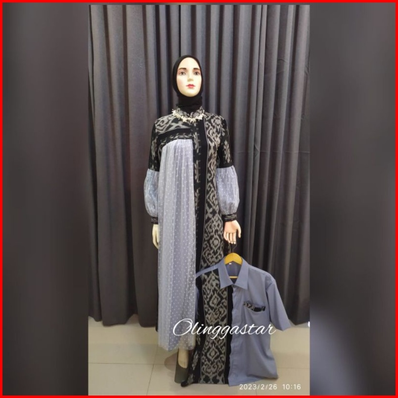 Ready Stock Gamis Raya Abu Silver Dress Tenun Couple Full Tenun - Baju Tenun Couple -
