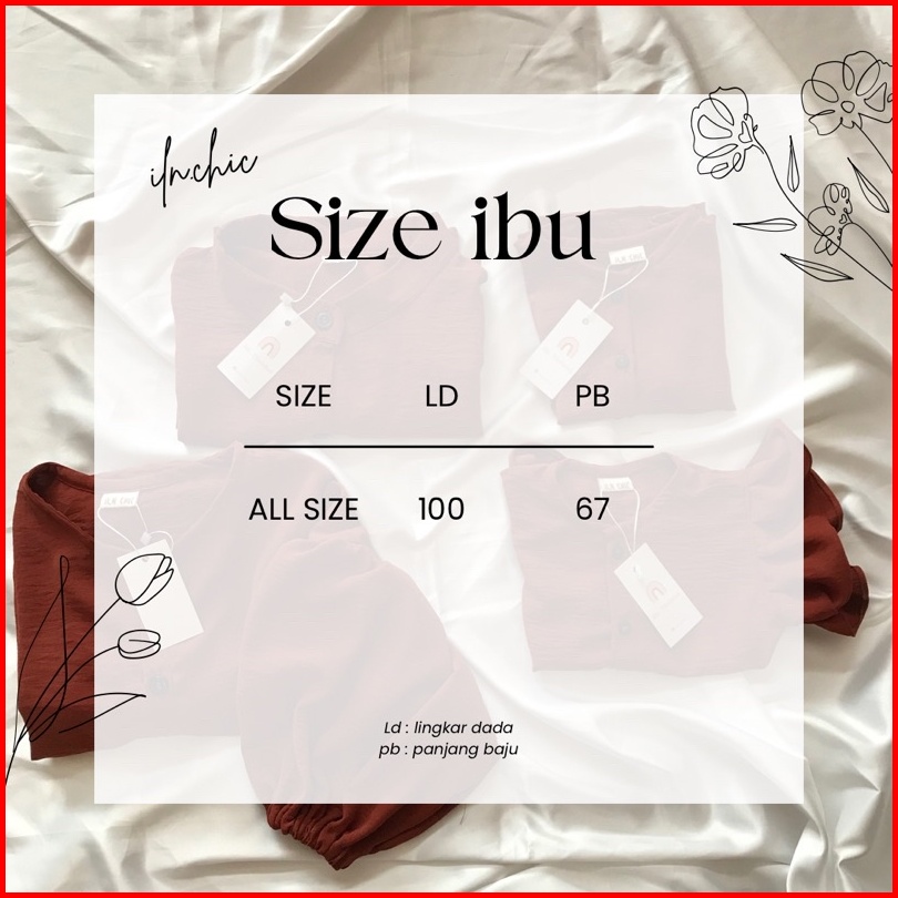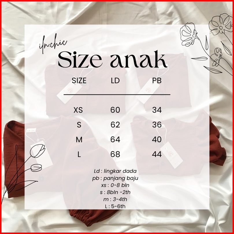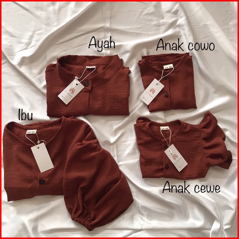 Ibu all size ld 100, Ibu big size ld 120, Ayah M, anak cewe lengan pjg, Ayah L-XL, Anak cewe size XS-L, Anak cowo size XS-L