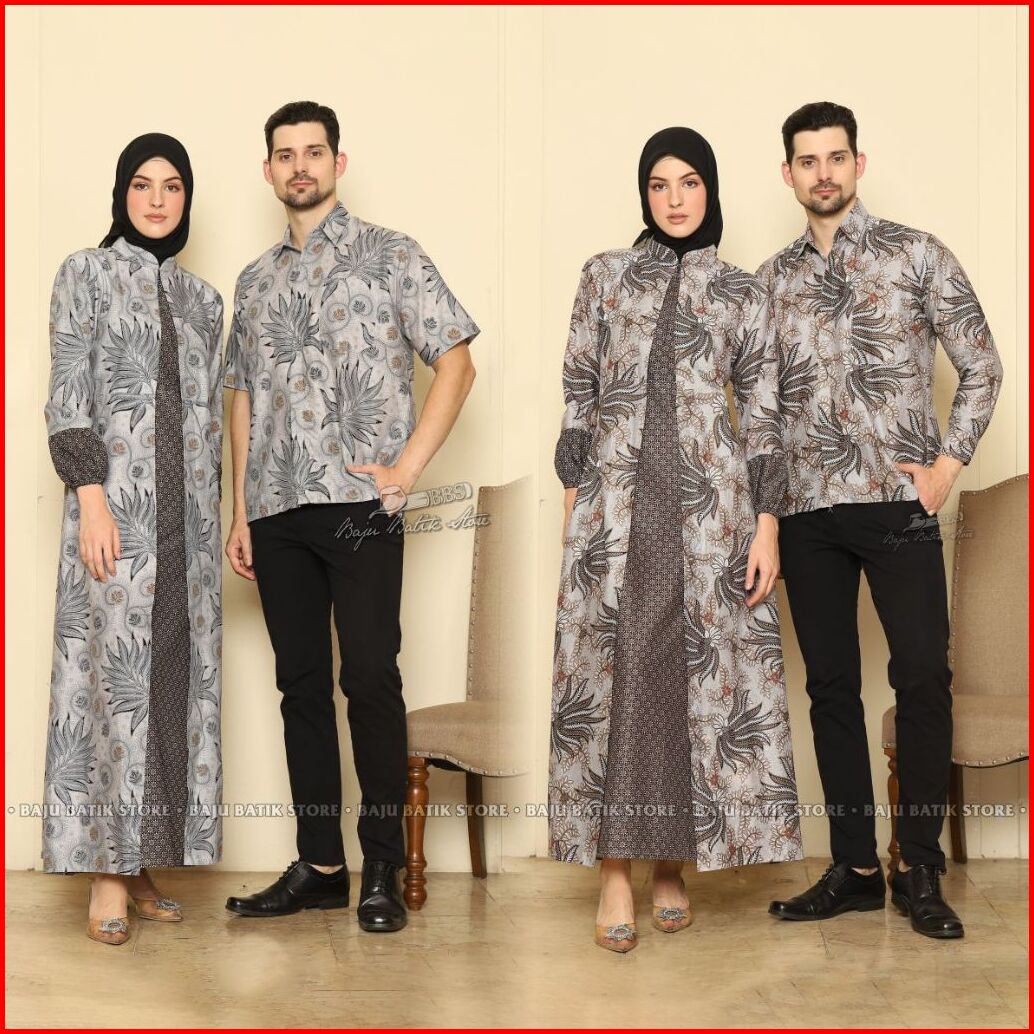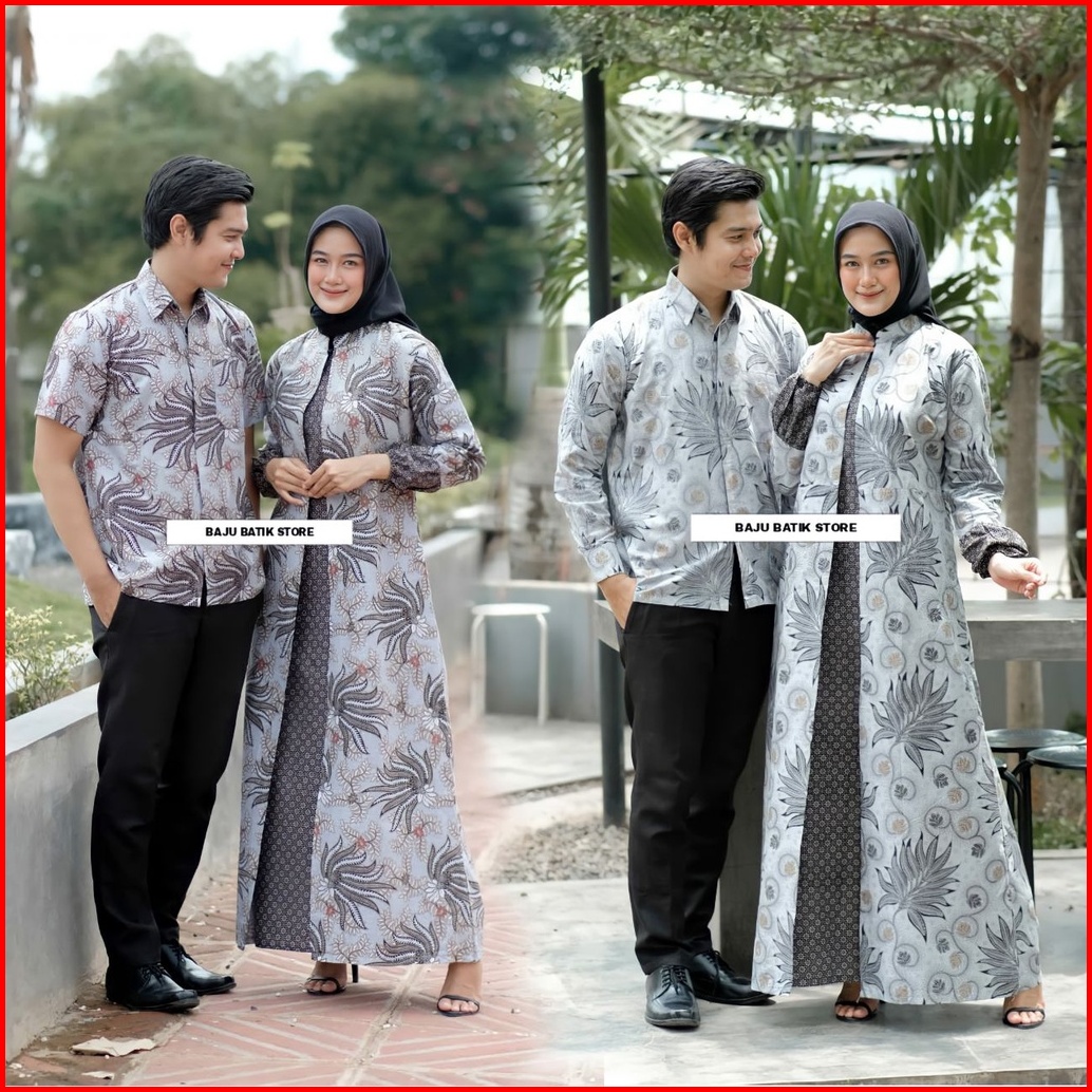 Baju Batik Gamis Sarimbit Couple Pasangan Kondangan Modern Kekinian Jumbo Etnik