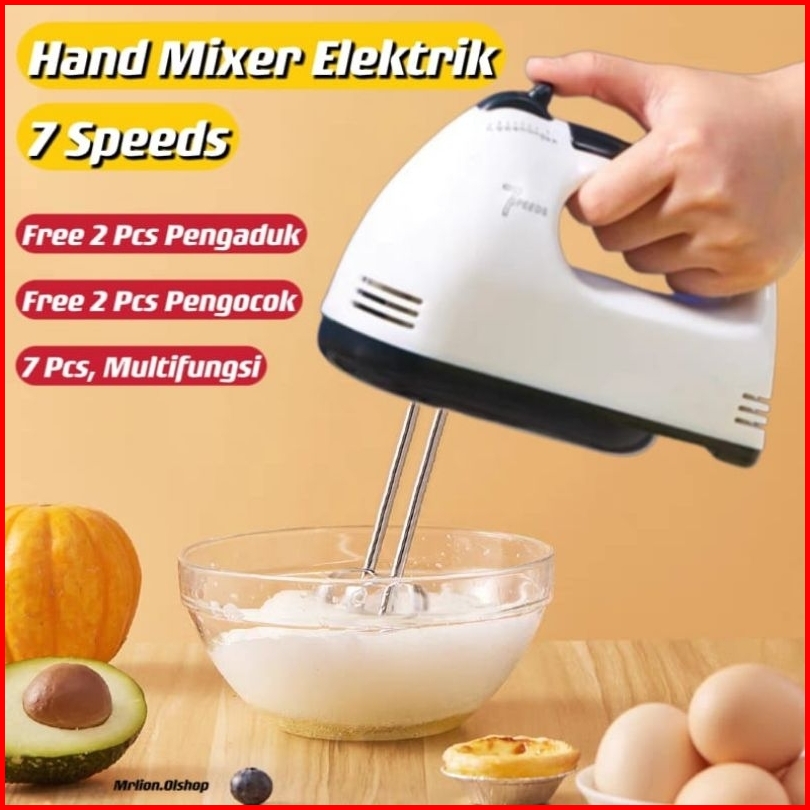 Super Hand Mixer Pengaduk 7 Kecepatan Hand Mixer Free 4 Buah Alat Pengocok Mrlion