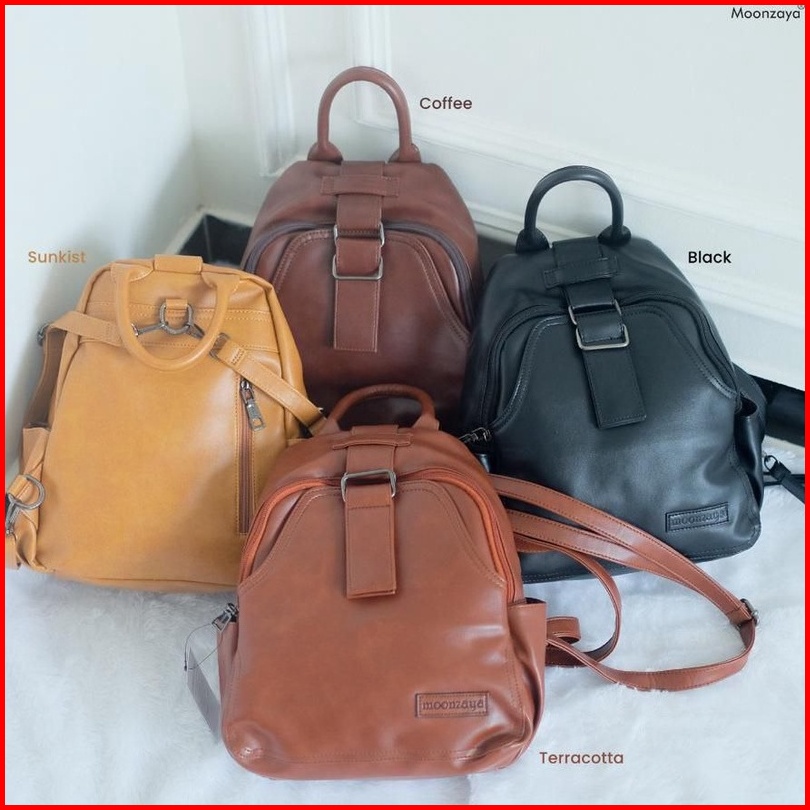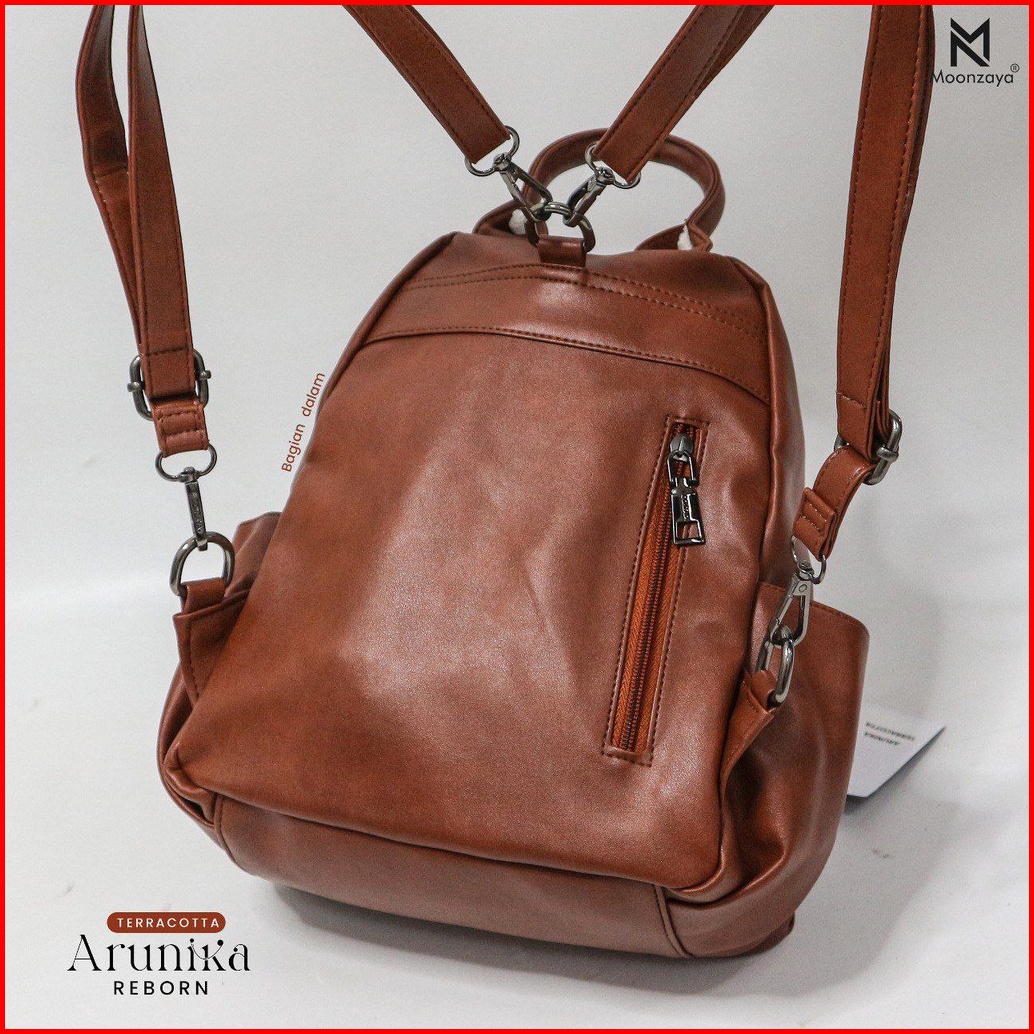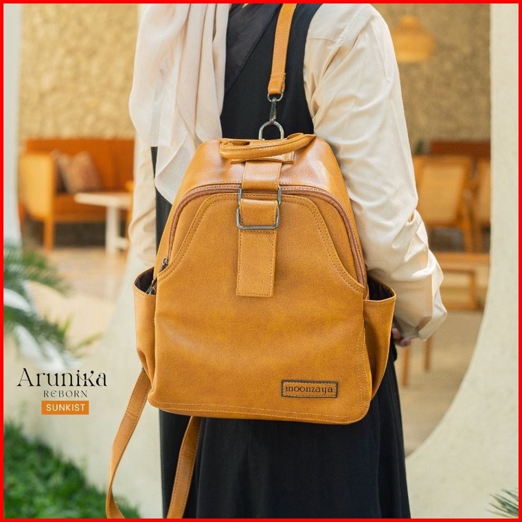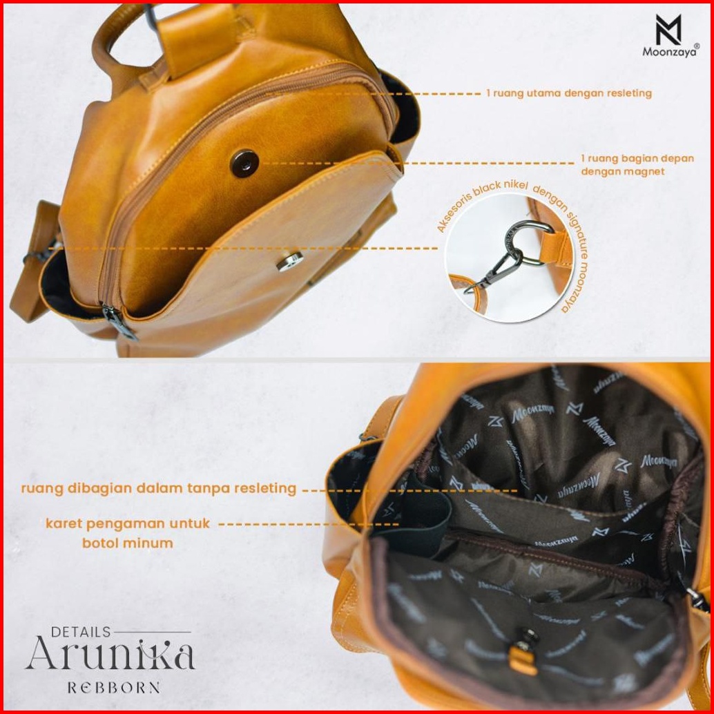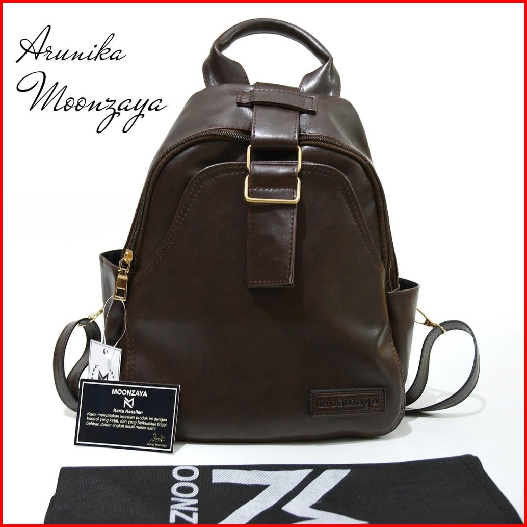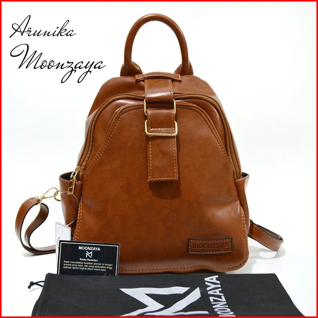 Moonzaya Arunika Tas Ransel Waterproof Wanita Sekolah Tas Kuliah Tas Kantor Ransel Vintage Material Kulit Sintetis Water