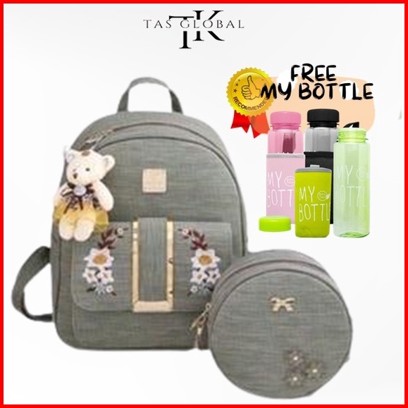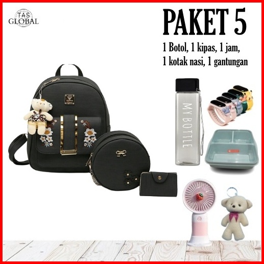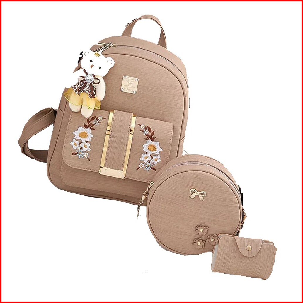 Tas Global Ransel Golden Flower 3 In 1 Ransel Terlaris Ransel Kulit Fashion Korea Tas Wanita
