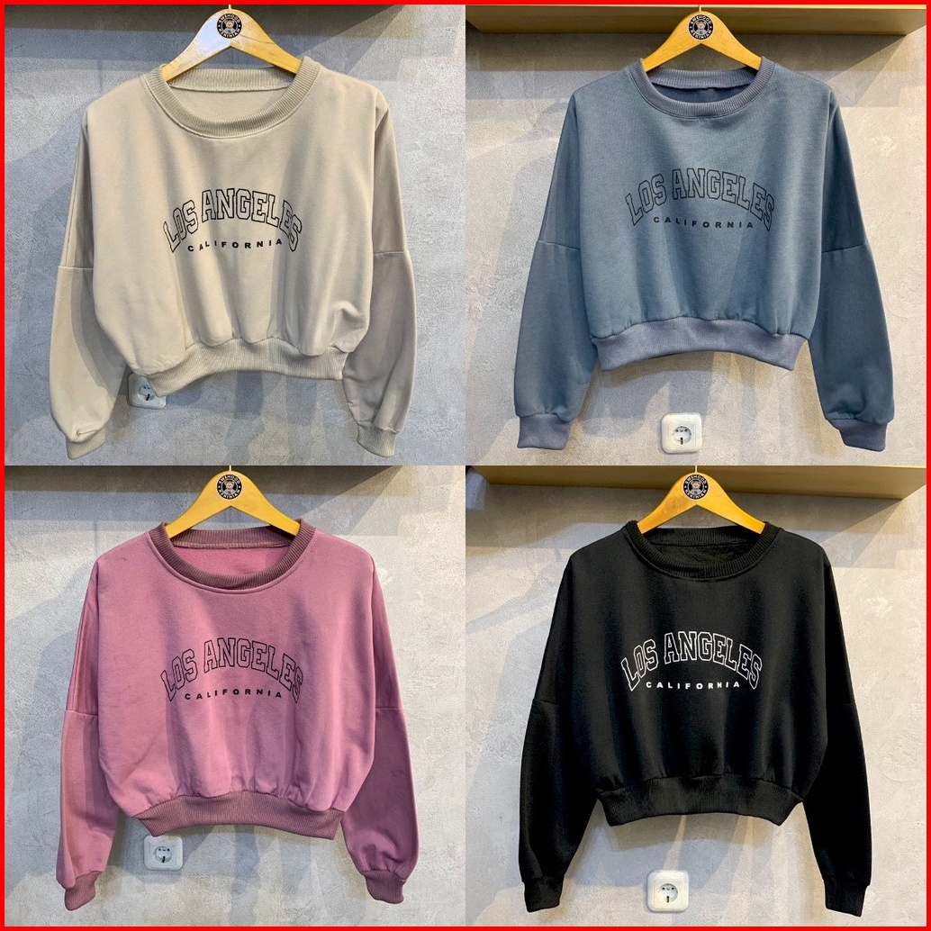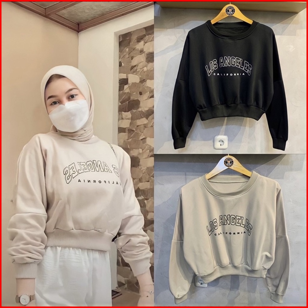 Ps Croope Los Angeles Sweater Crope Ala Korea Crewneck Sweatshirt Kpop Wanita Kekinian Oversize Fashion Outfit Ootd Kore