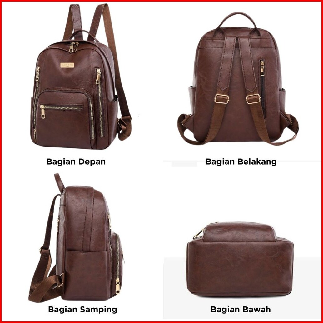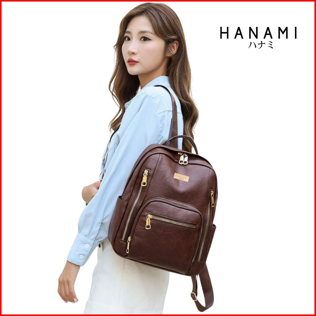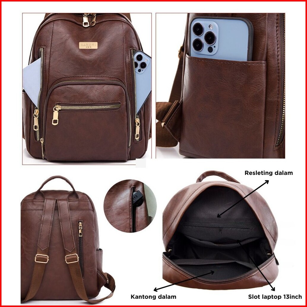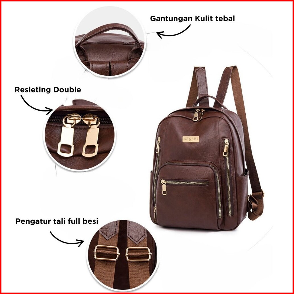 Hanami Tas Ransel Wanita Kulit Vinzea Cantik Korea Fashion Cokelat Branded Mewah Kekinian Ta1018b7