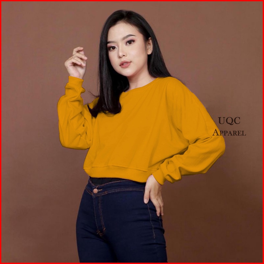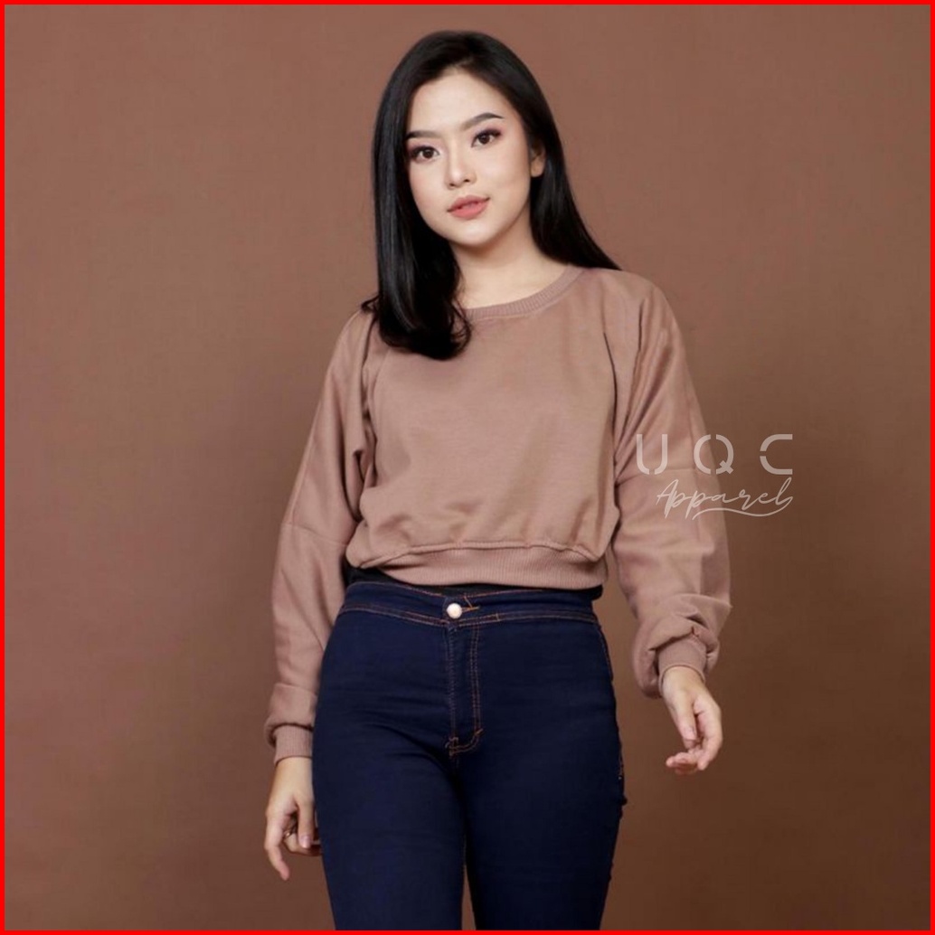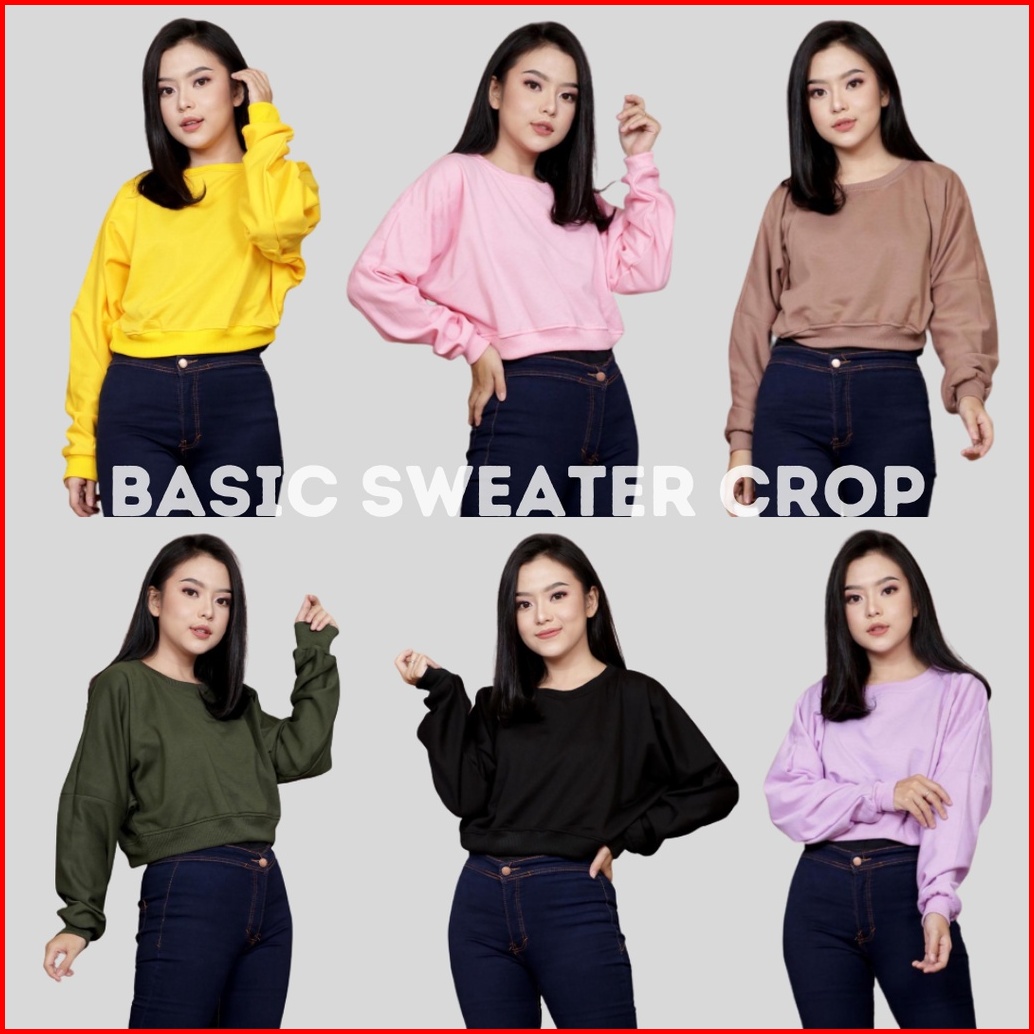 Sweater Crop Polos Wanita Rib Size M - Xxl Basic Sweater Polos Crop Wanita