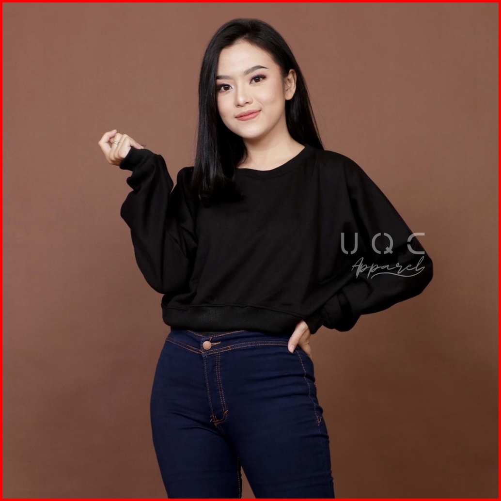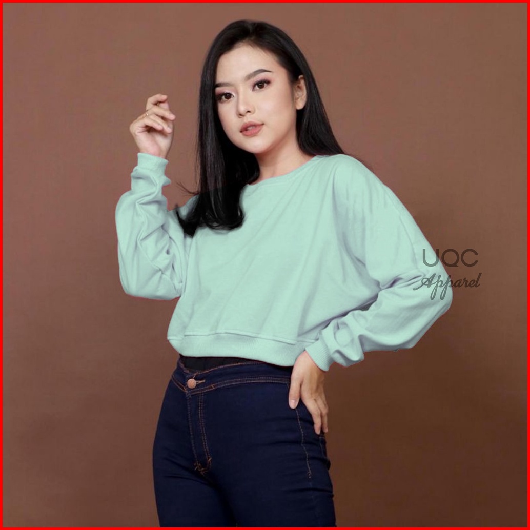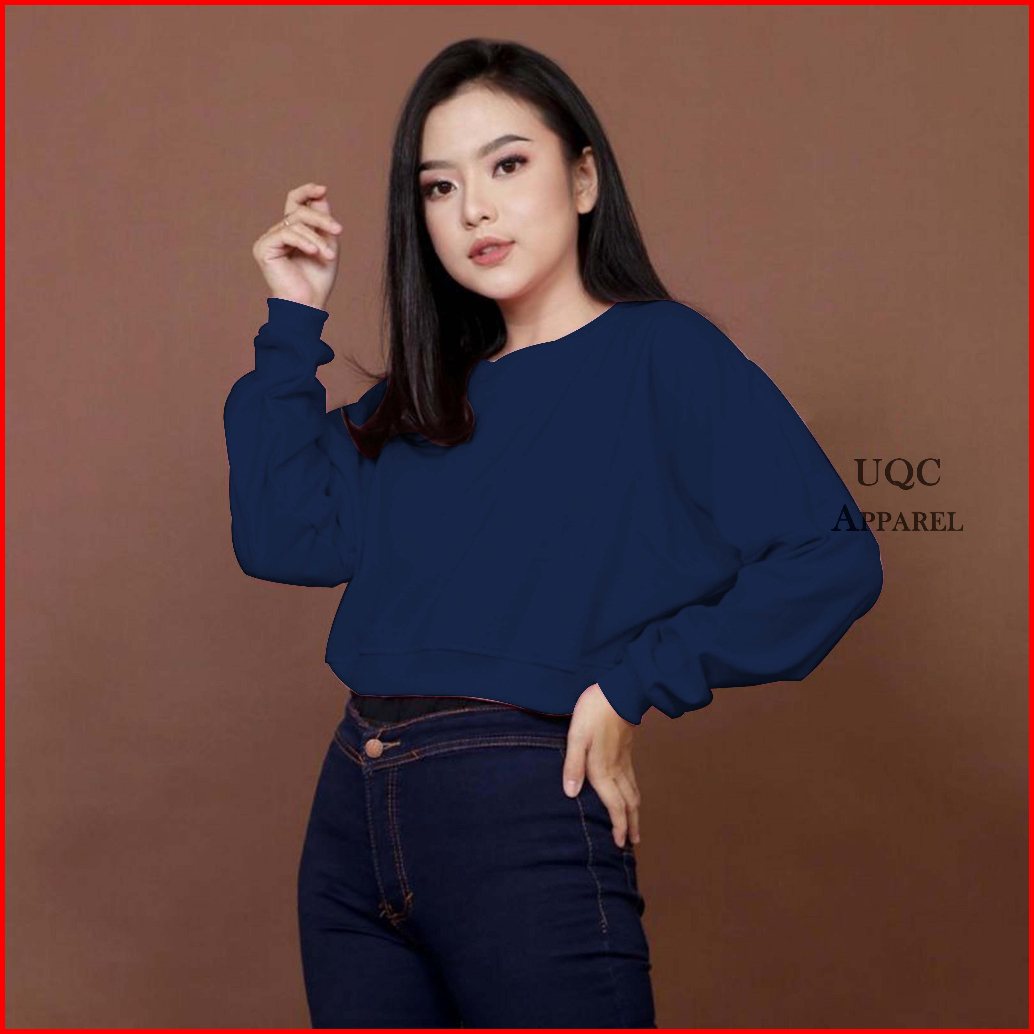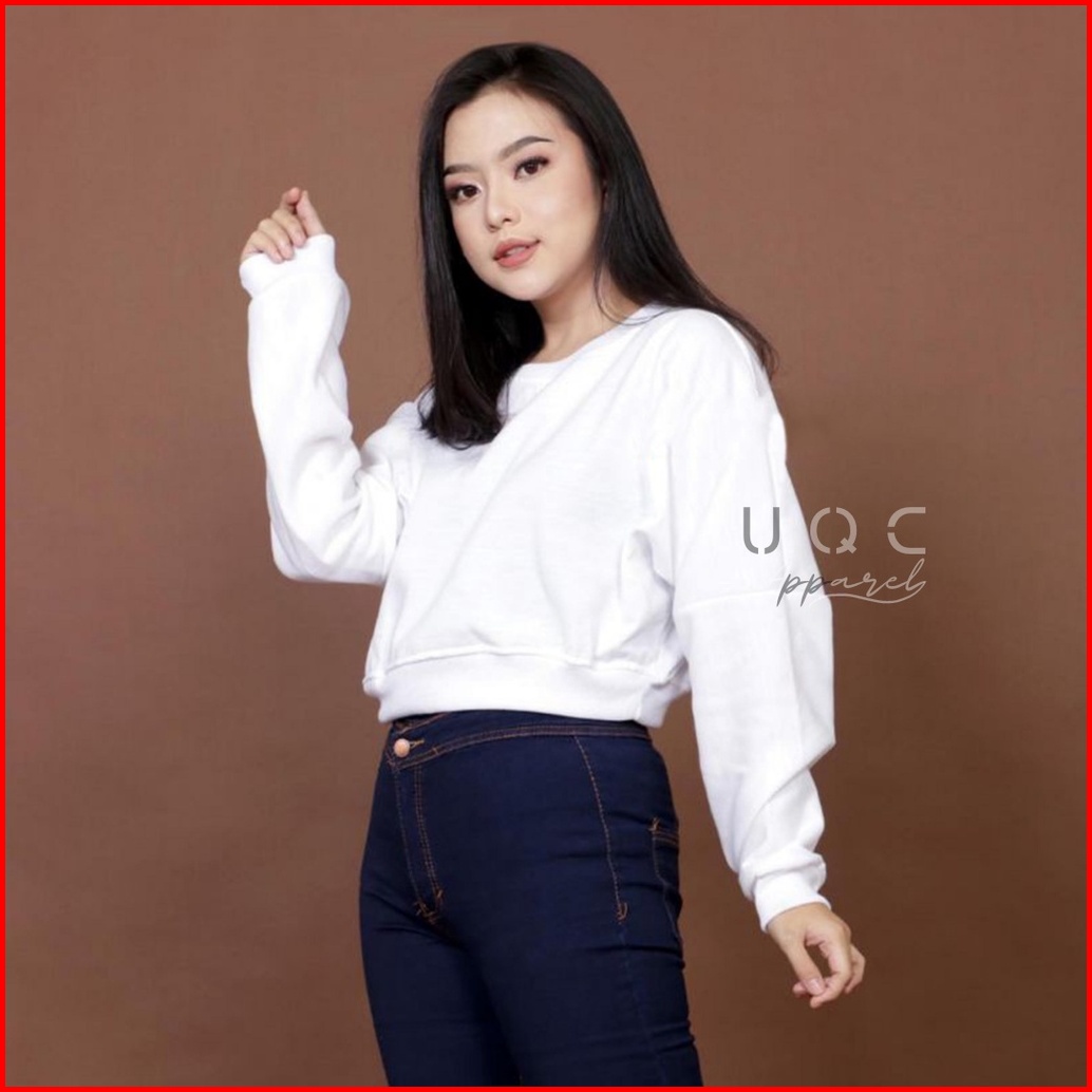 Sweater Crop Polos Wanita Rib Size M - Xxl Basic Sweater Polos Crop Wanita