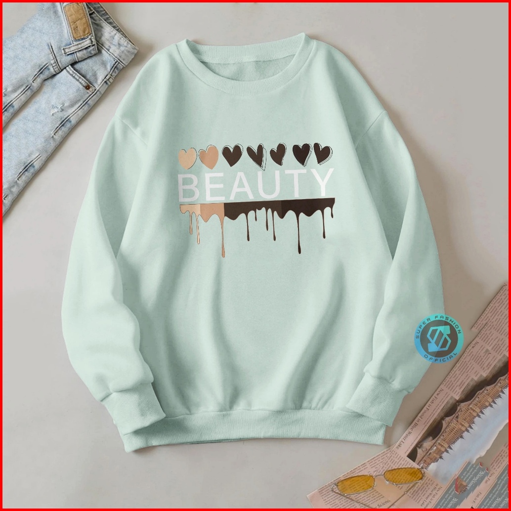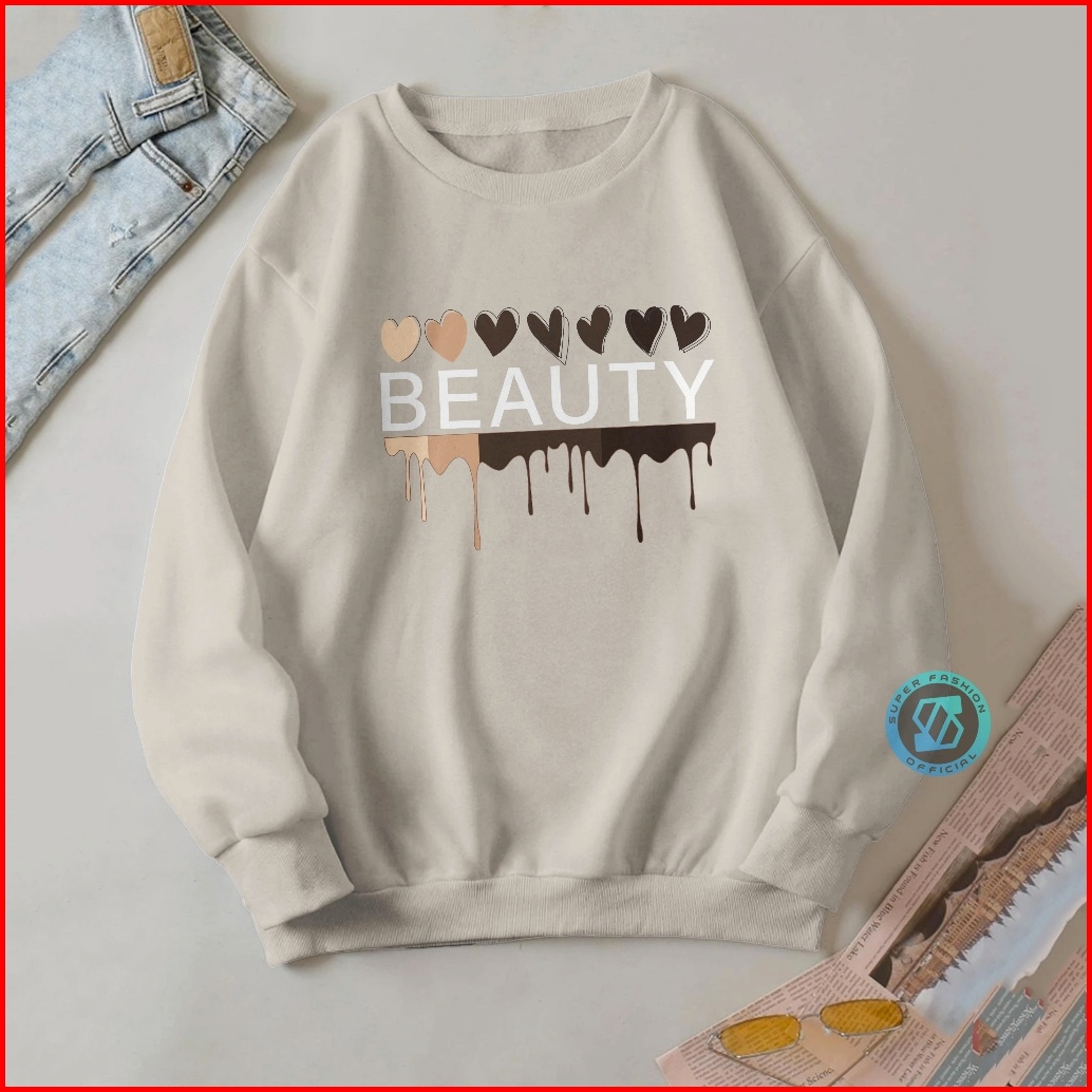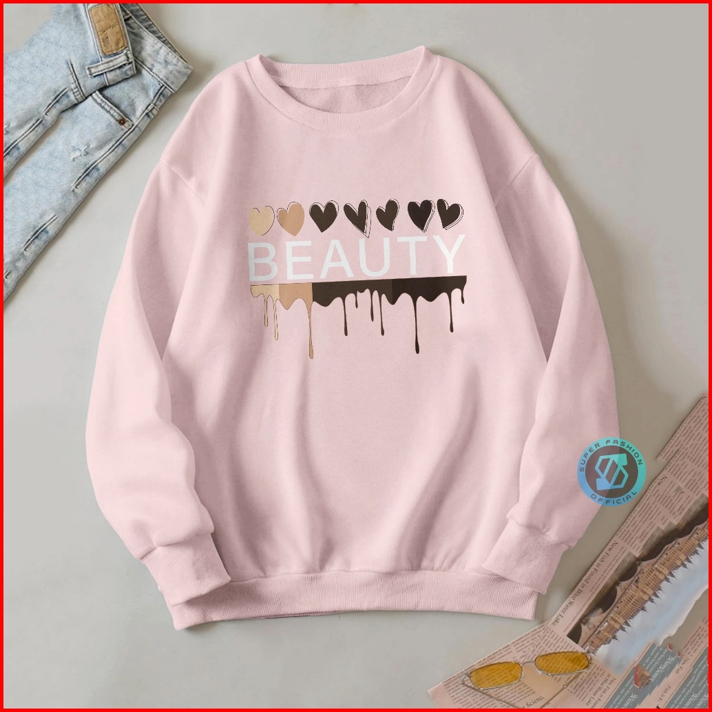 Sweater Wanita Beauty Love Sweatshirt Remaja Korean Style Thai Kekinian Oversize