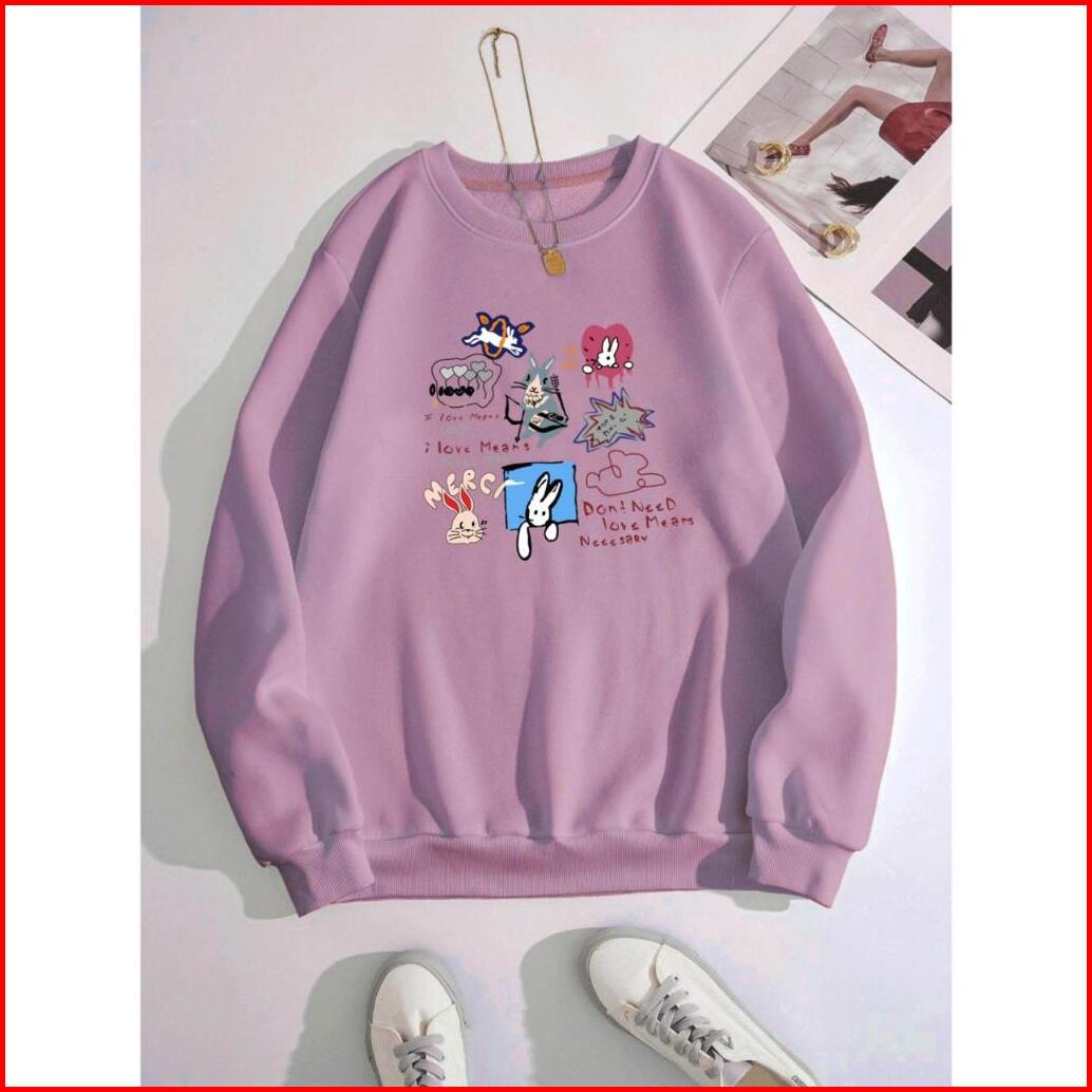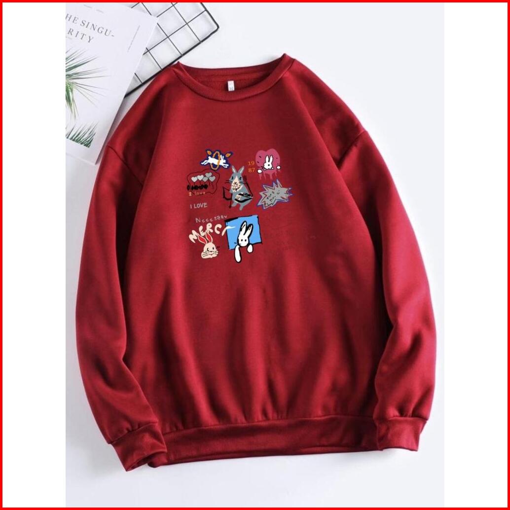 Crewneck Lova Bunny Sweater Oneck Sweater Jumper Wanita