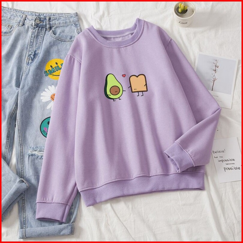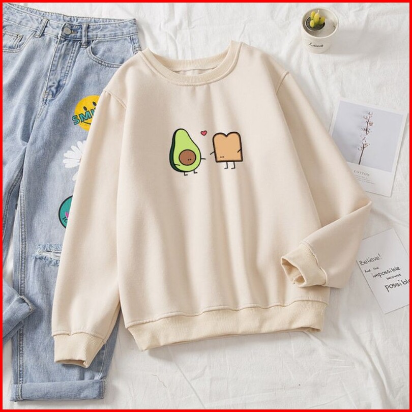 Sweater Wanita Avocado Korean Style Sweatshirt Terbaru Bahan Fleece Tebal Allsize
