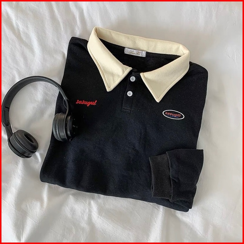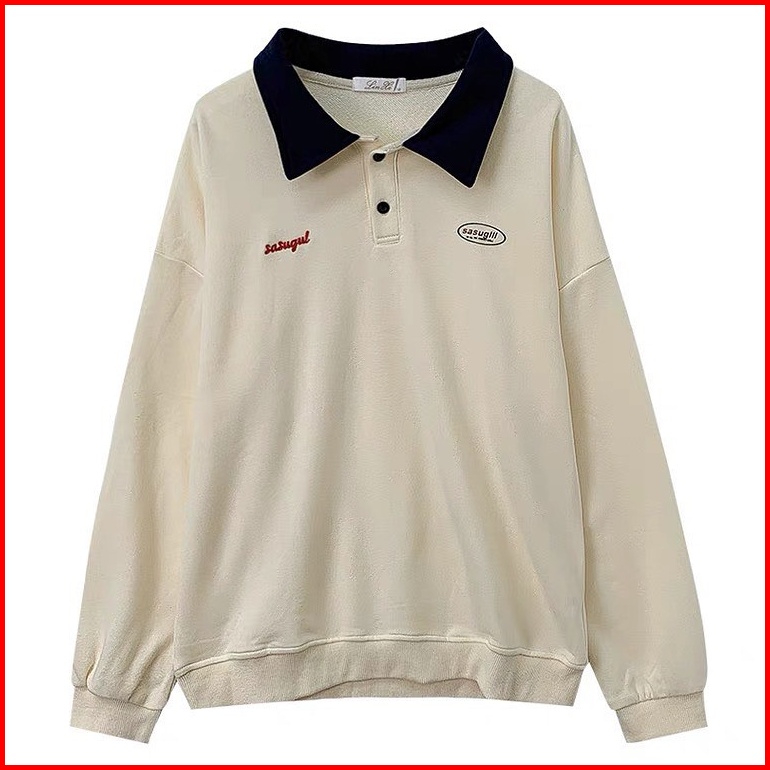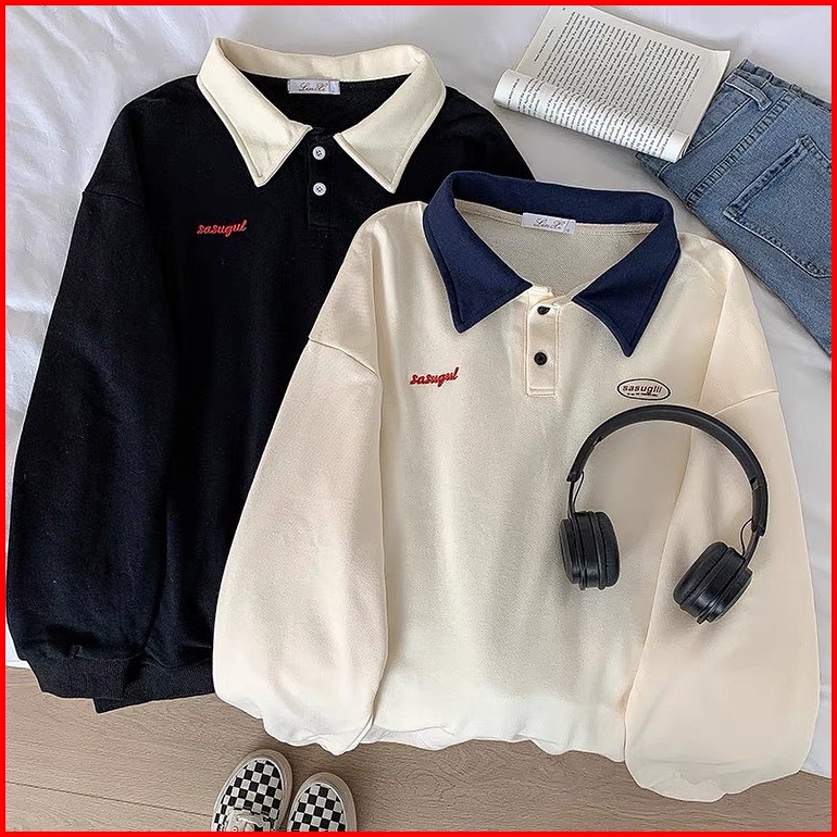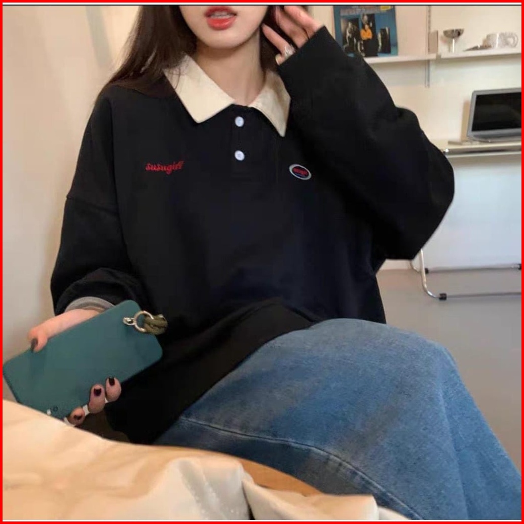 Sweater Wanita Oversize Sasugul Sweater Kancing Polos Kerah Bordier Sweater Korean Style
