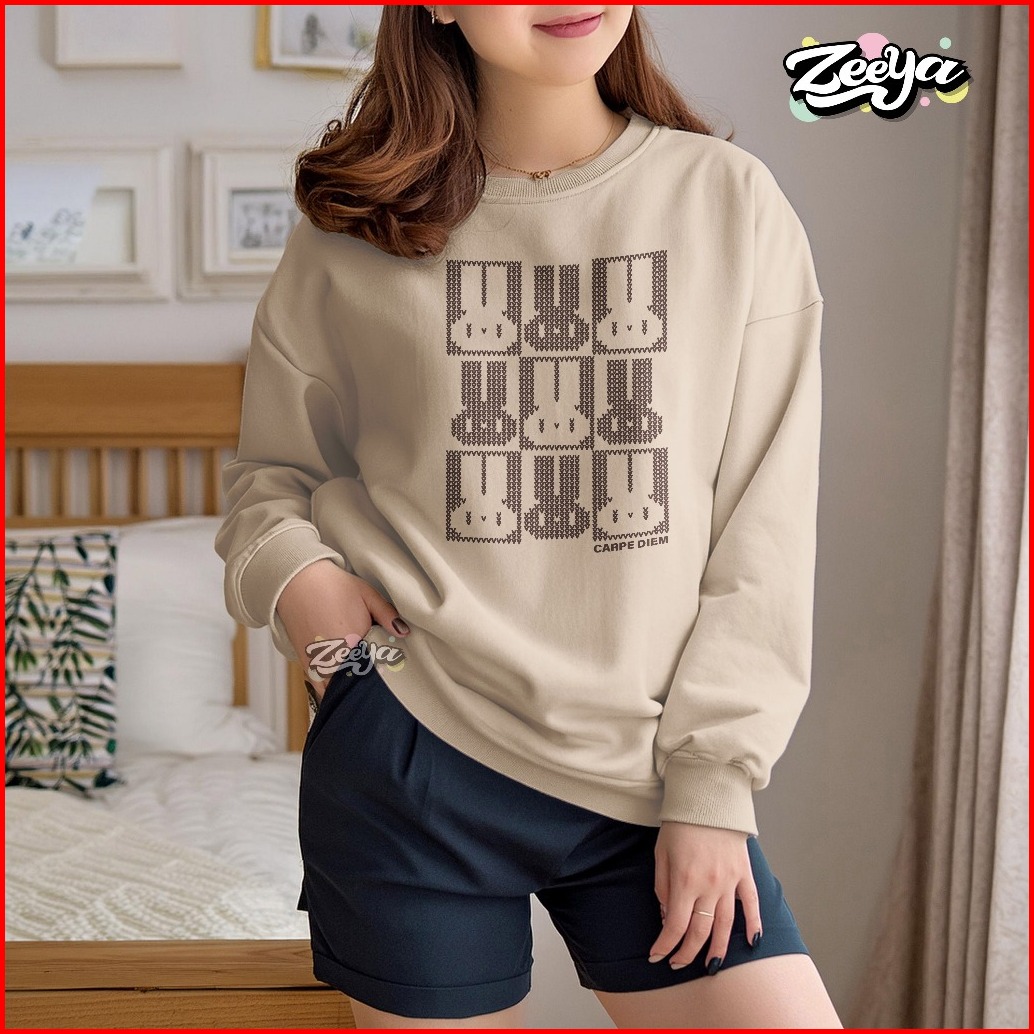 Zy - Carpe Rabbit Korean Sweatshirt Remaja Wanita Kekinian Sweater Bahan Fleece