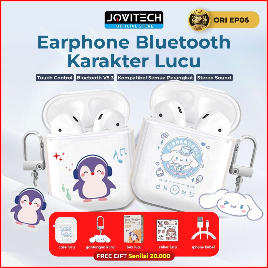 Jovitech Earphone Bluetooth True Wireless Headset Casing Kartun Lucu Transparan Hifi Stereo - Ep06