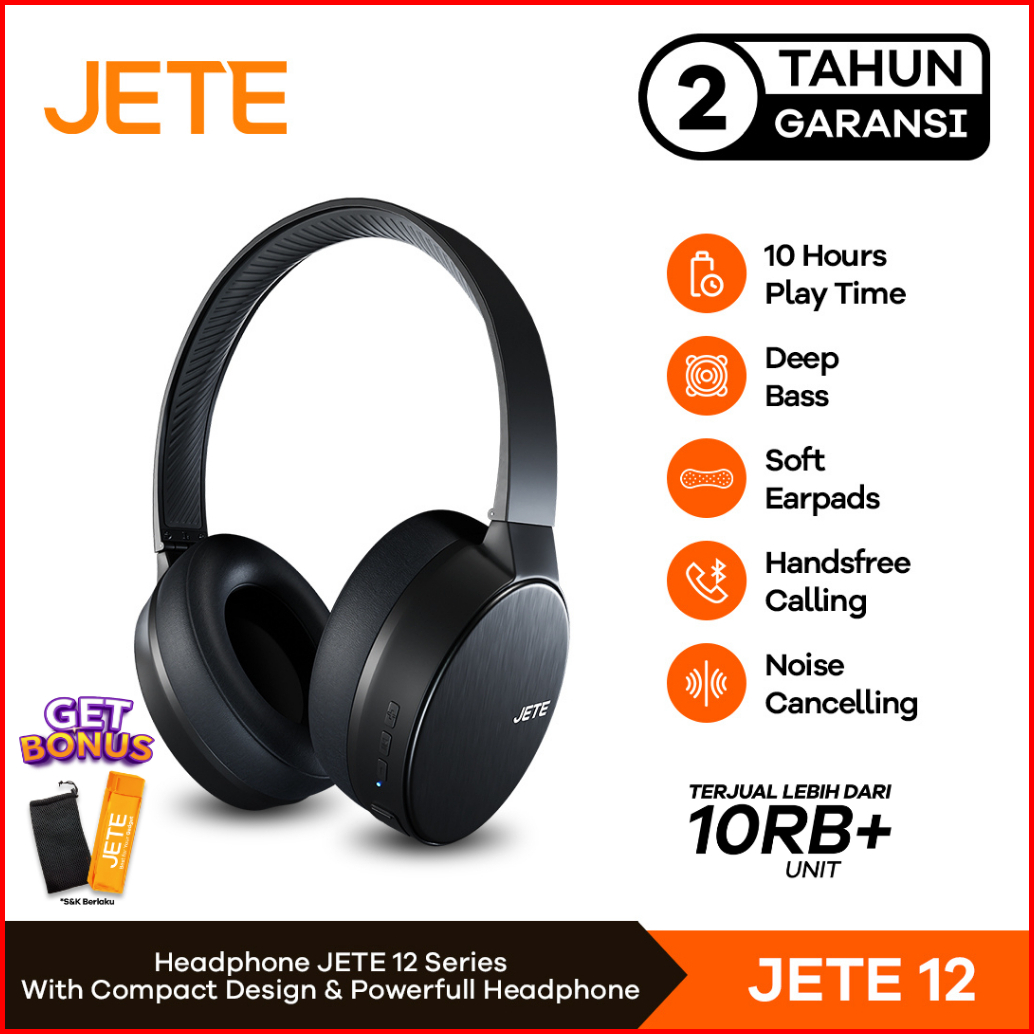 Headset Bluetooth Headphone Bluetooth Jete 12 Noise Cancelling Built In Microphone - Garansi 2 Tahun