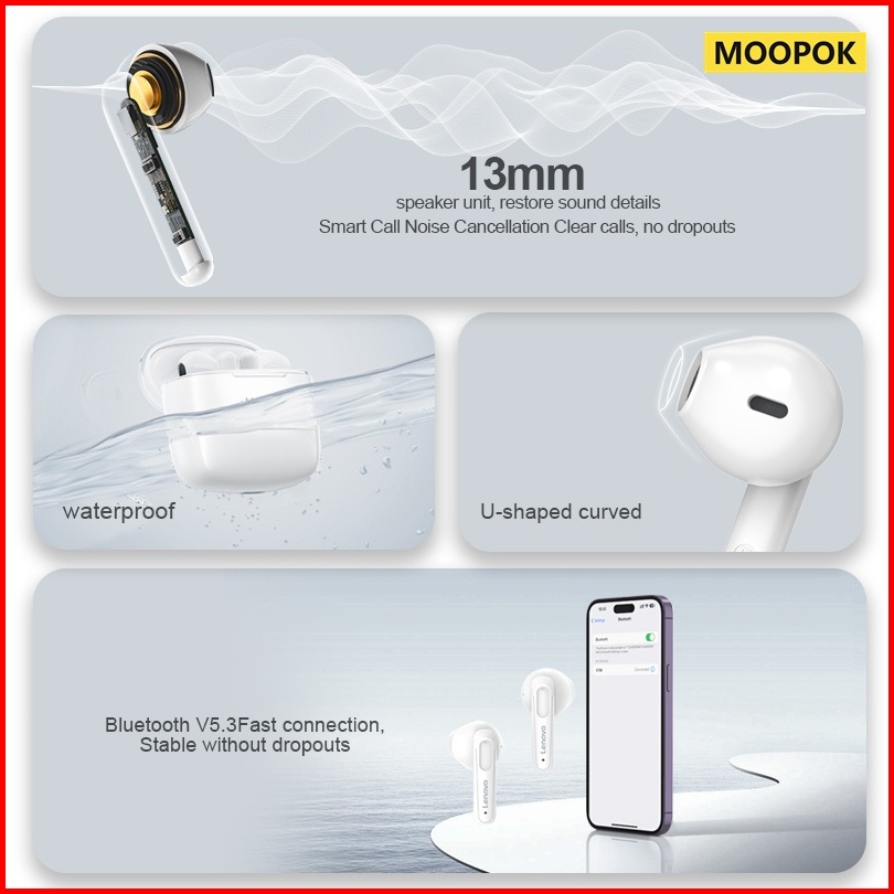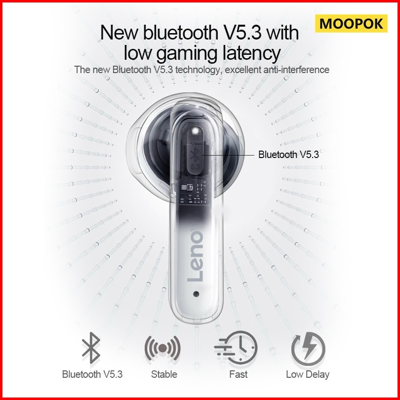 Moopok X Lenovo Erazer Xt98 Pro Headset Thinkplus Earphone Bluetooth 5.3 Dengan Mic Hifi Stereo Hd Call Untuk Ios Androi