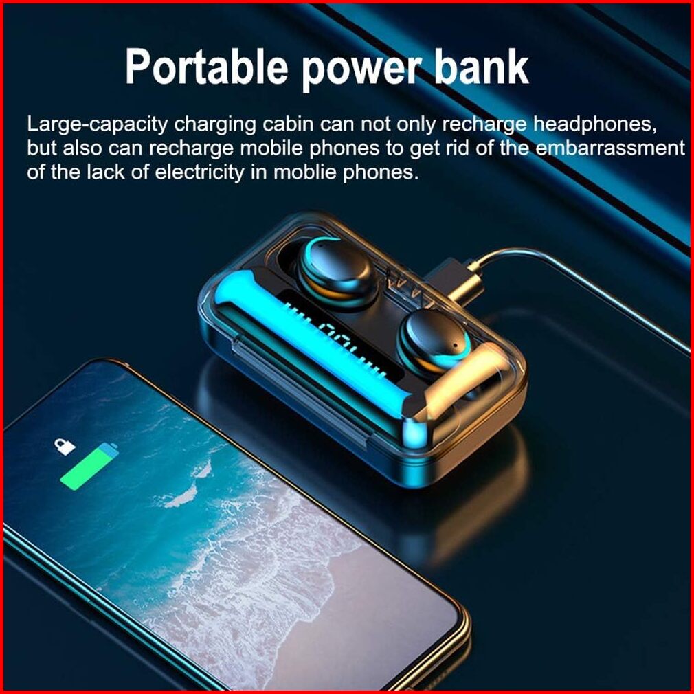 Miyoo Tws Wireless Earphone Earbuds In Ear Headset Bluetooth 5.0 Dengan Hifi Stereo 9d With 3000 Mah Powerbank - F9