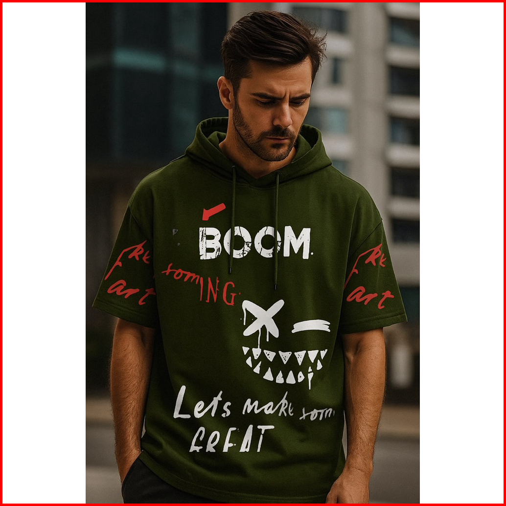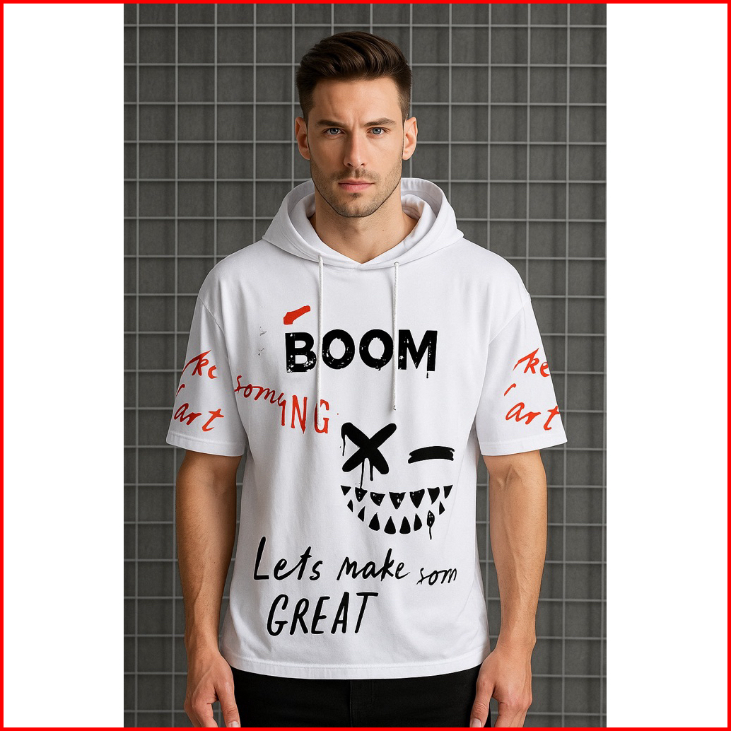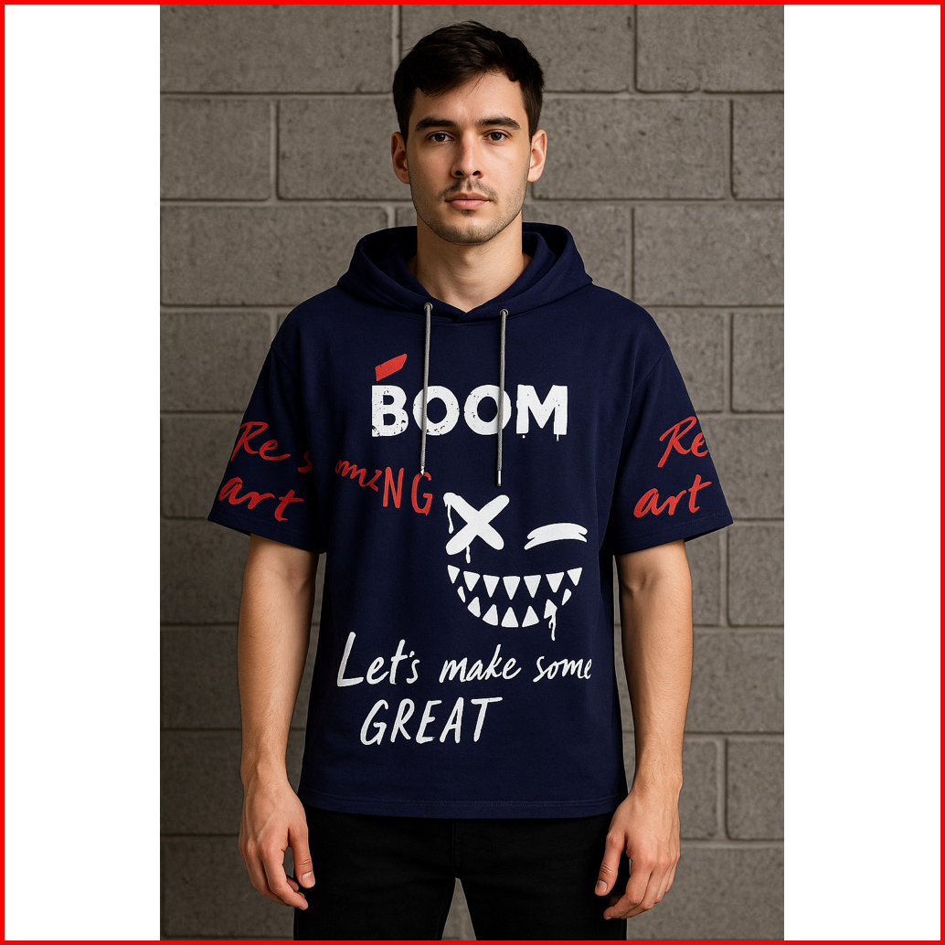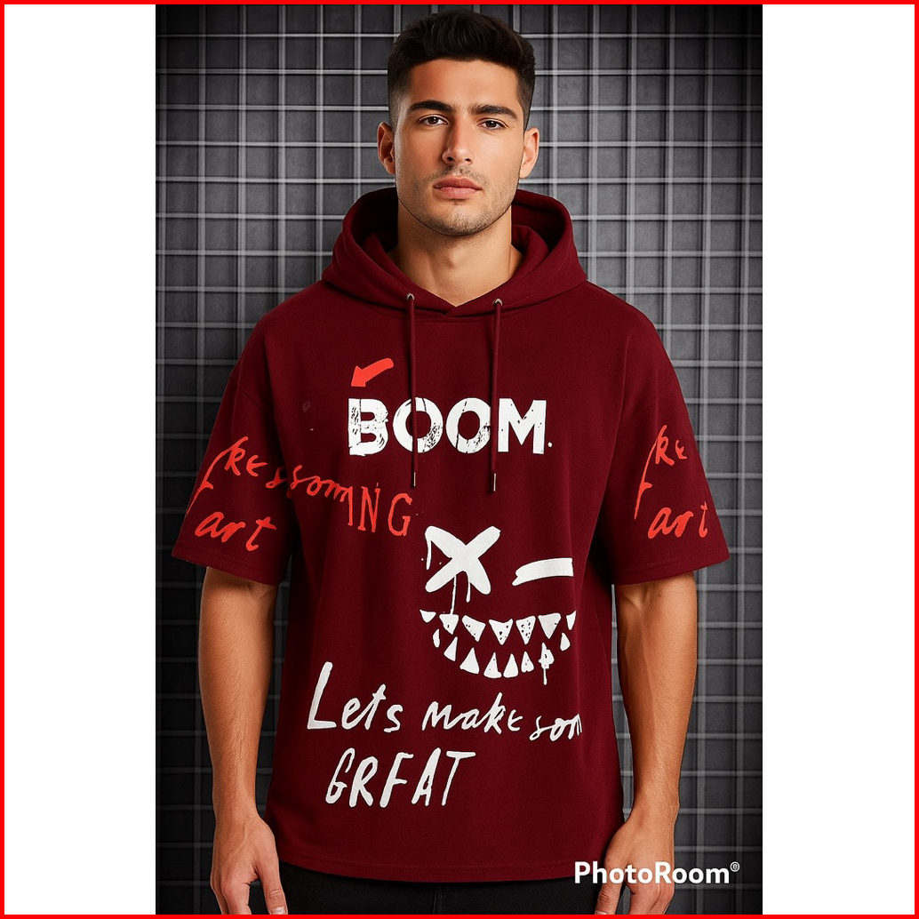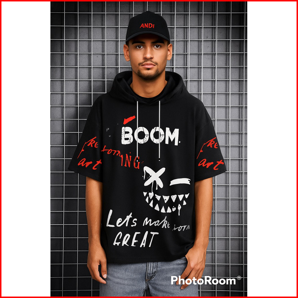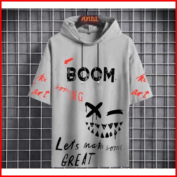 Andidistroid Kaos Kupluk Sablon 2 Warna Boom Kikinian Hoodie Sablon Viral Lengan Pendek Kaos Hoodie Pria Dewasahoodie Po
