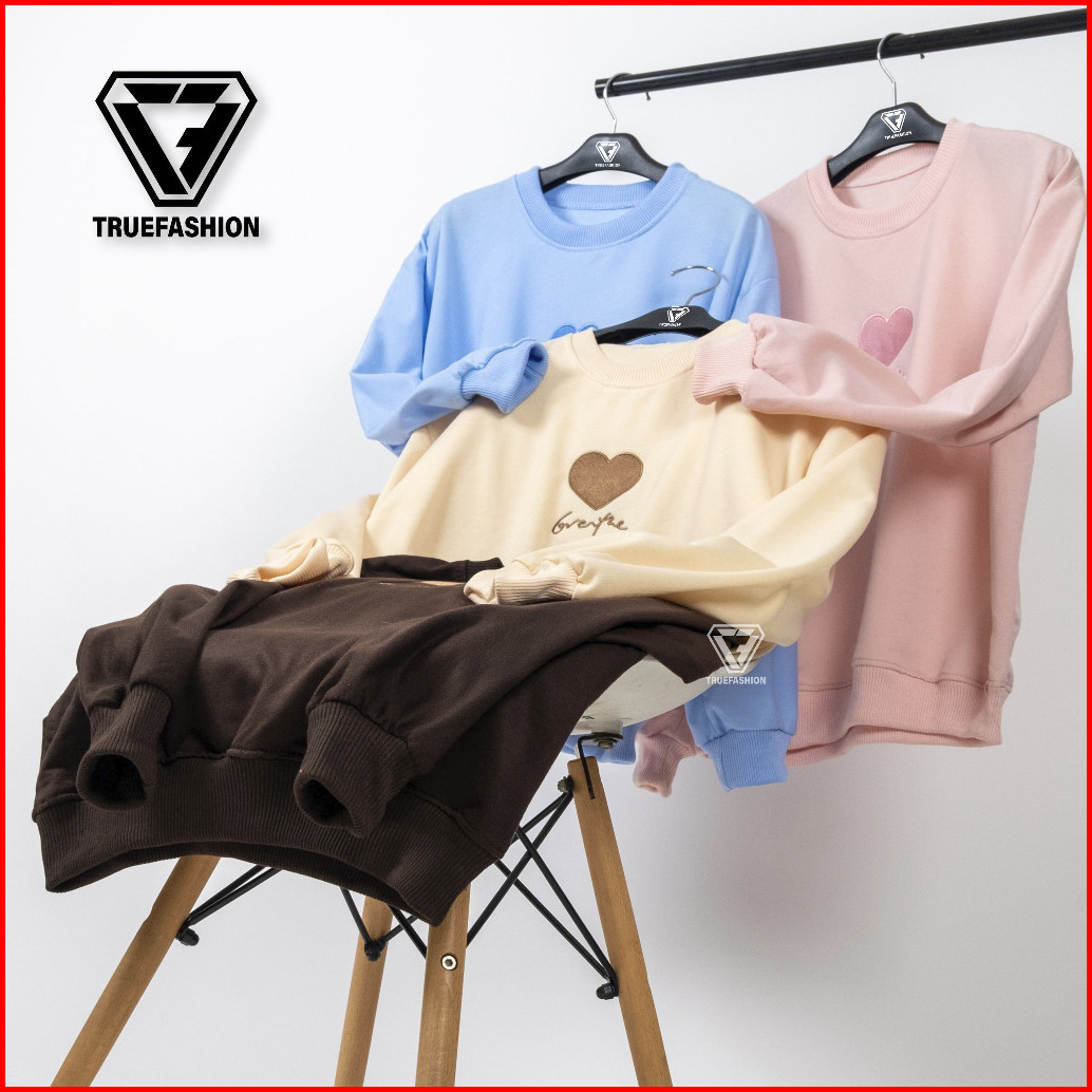 Sweater Wanita Fine Love - Bordir - Baju Wanita - Sweatshirt Lucu - Bahan Fleece - Allsize