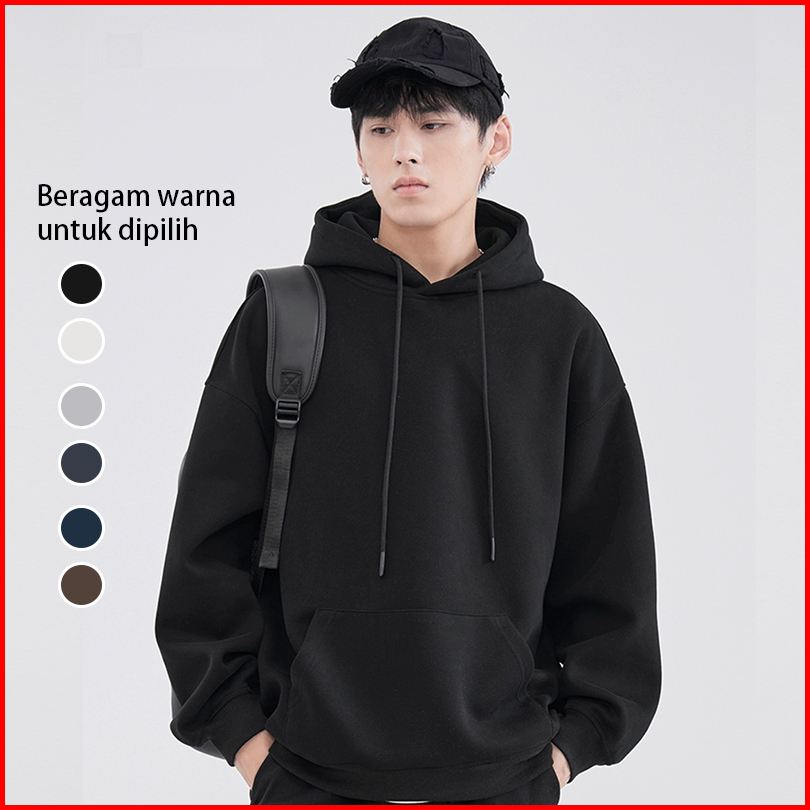Pullover Hoodie Fleece Black Hoodie Jumper Katun Fleece Size M L Xl Xxl