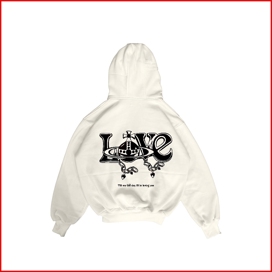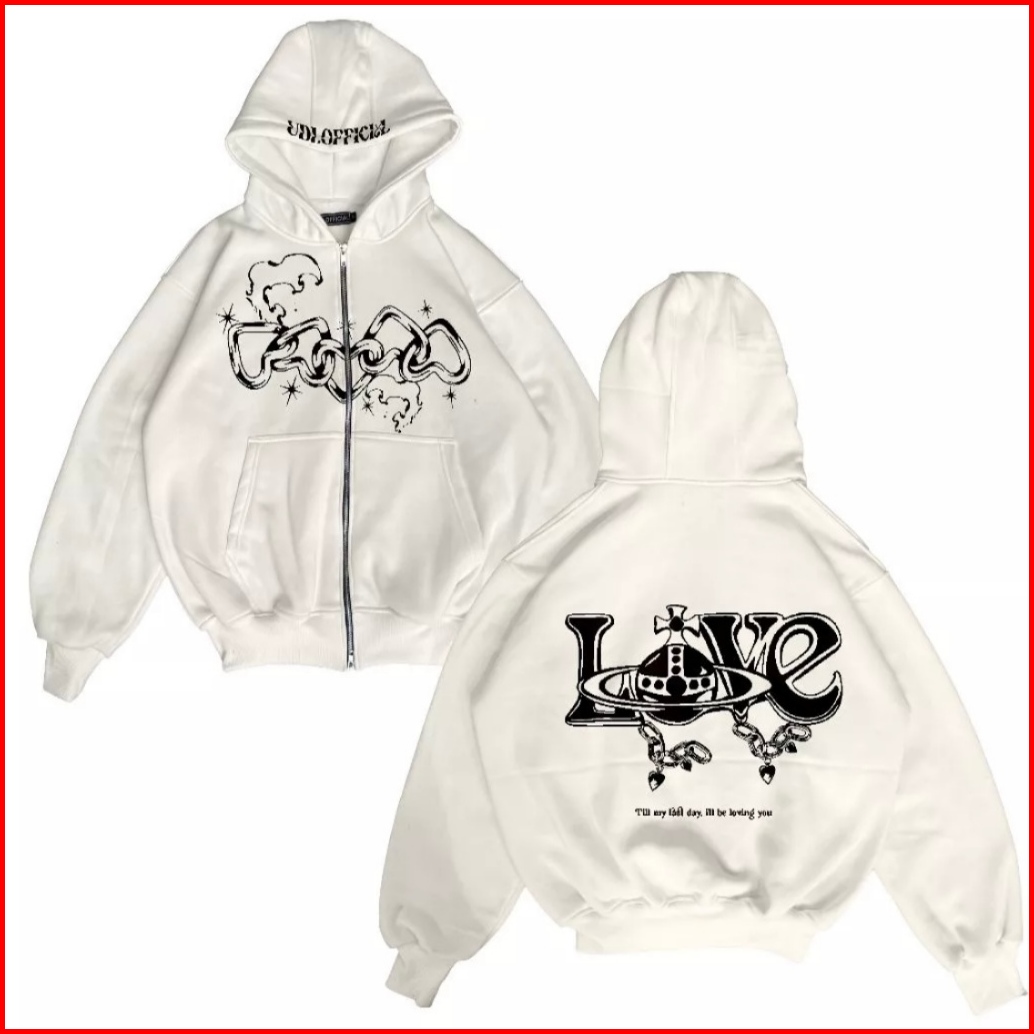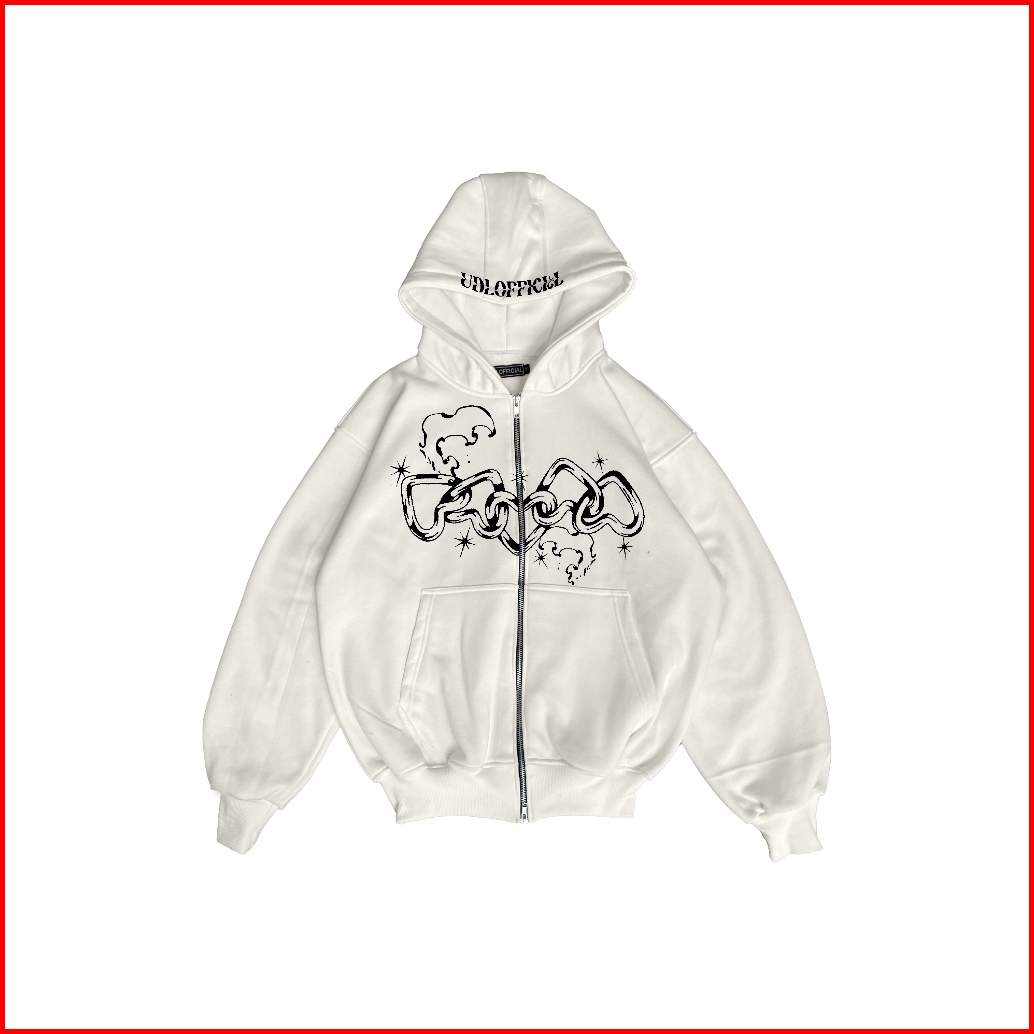 Doommarket - Hoodie Boxy Double Zipper Udloff Broken White Love Unisex Oversize 280-330 Gsm Hoodie Resleting Boxy Hoodie