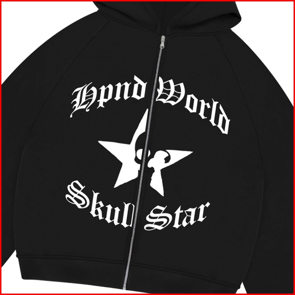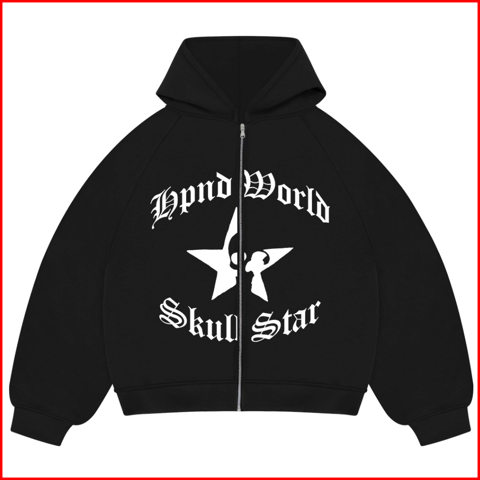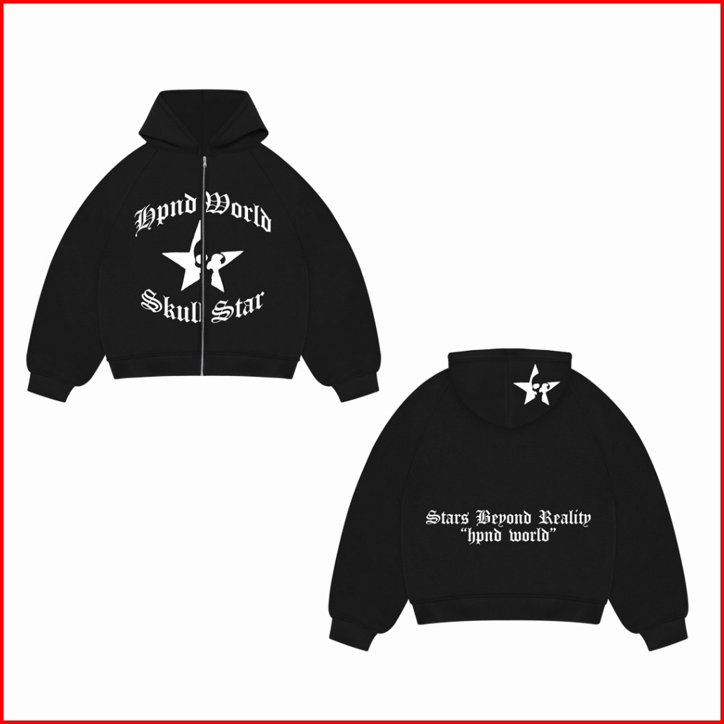 Hpnd - Hoodie Boxy Hitam Skull Star Zipper Hoodie Boxy Zipper Boxy 280-300gsm Fleece
