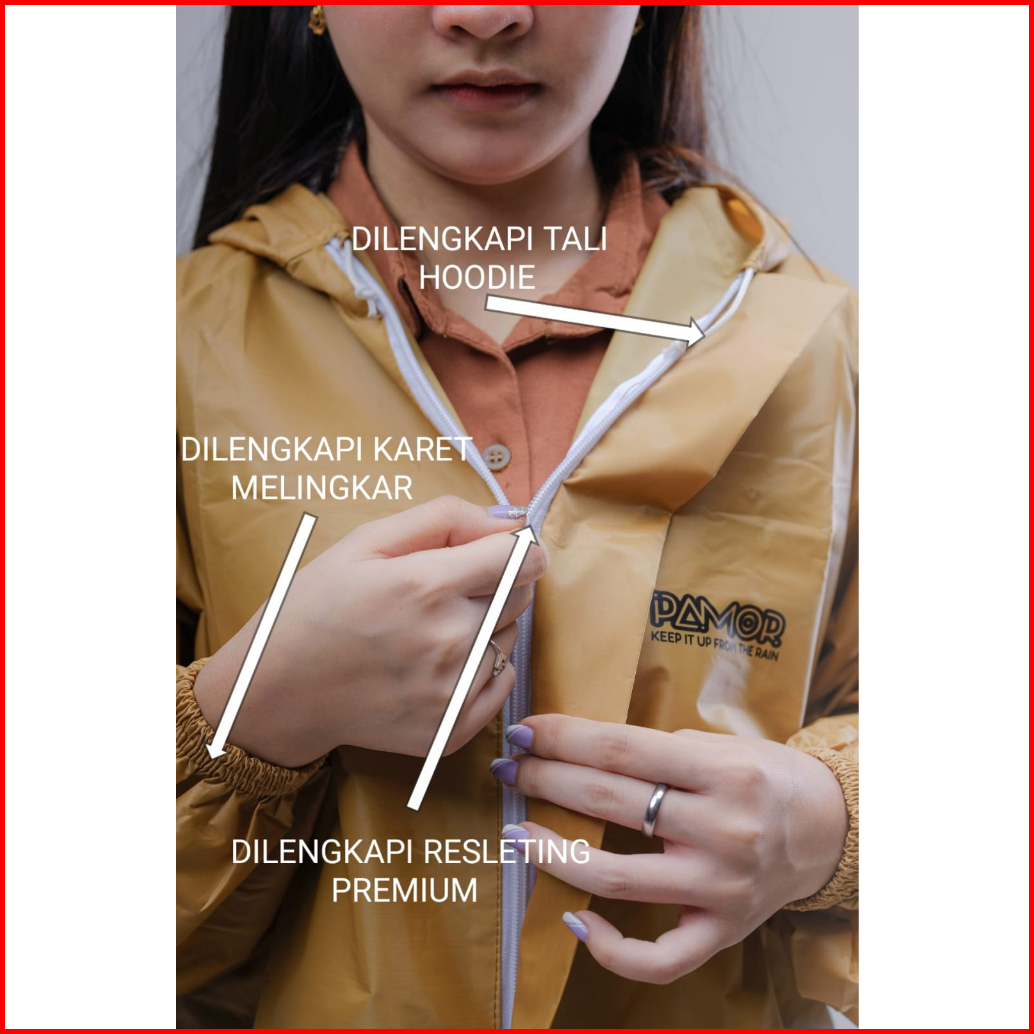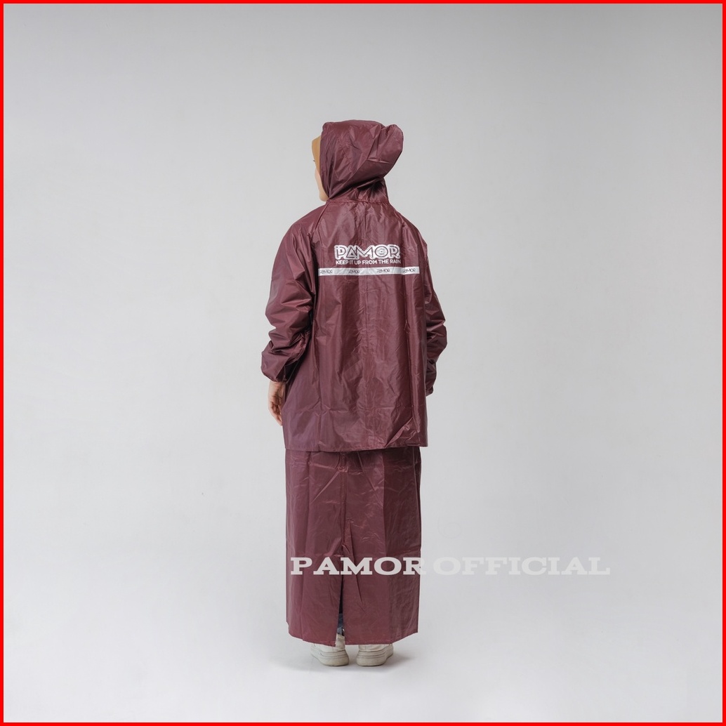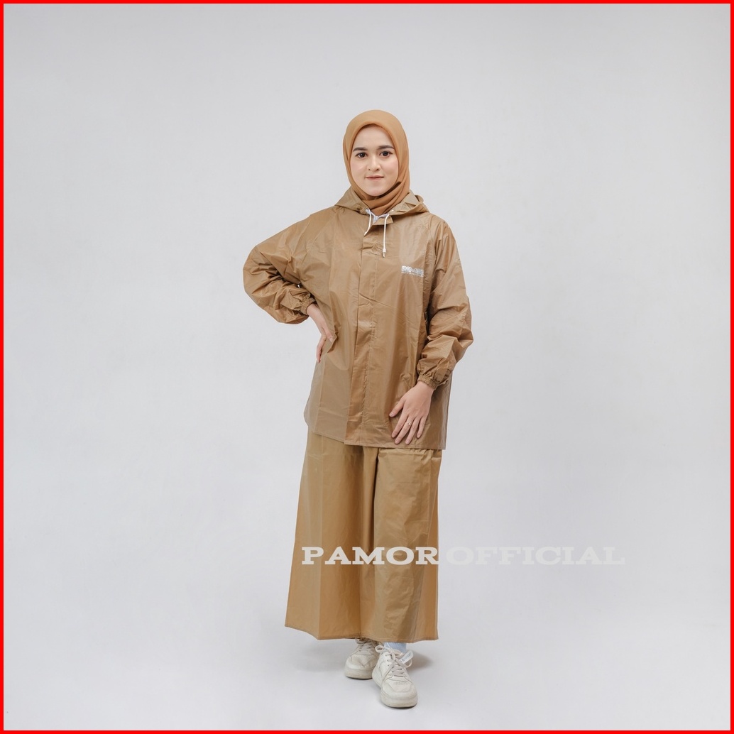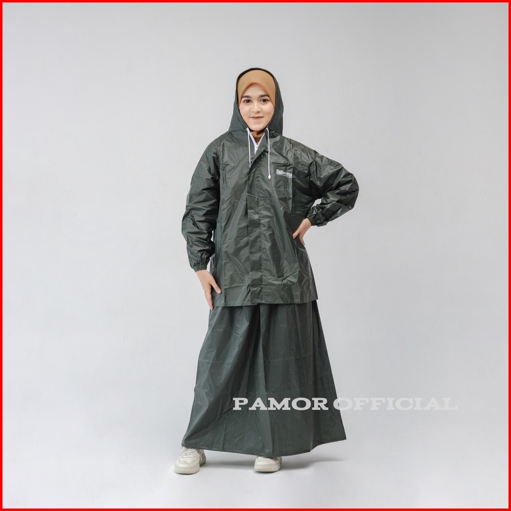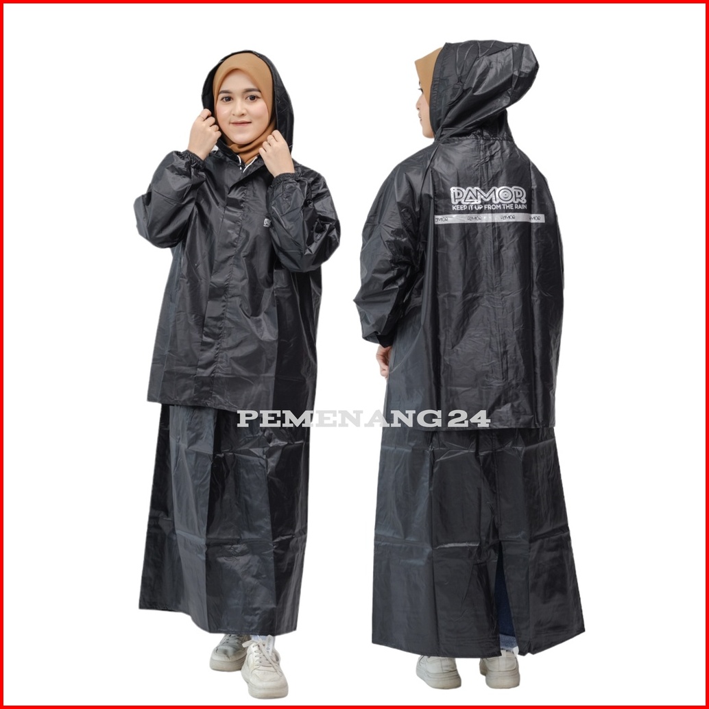 Pamor Jas Hujan Setelan Rok Mantel Hujan Wanita Parasut Waterproof Hitam