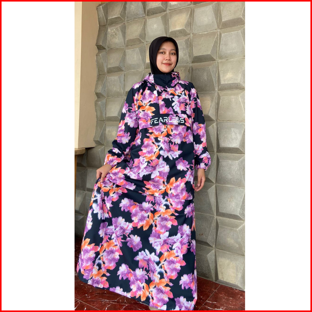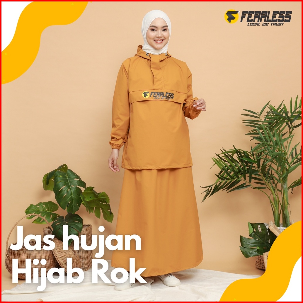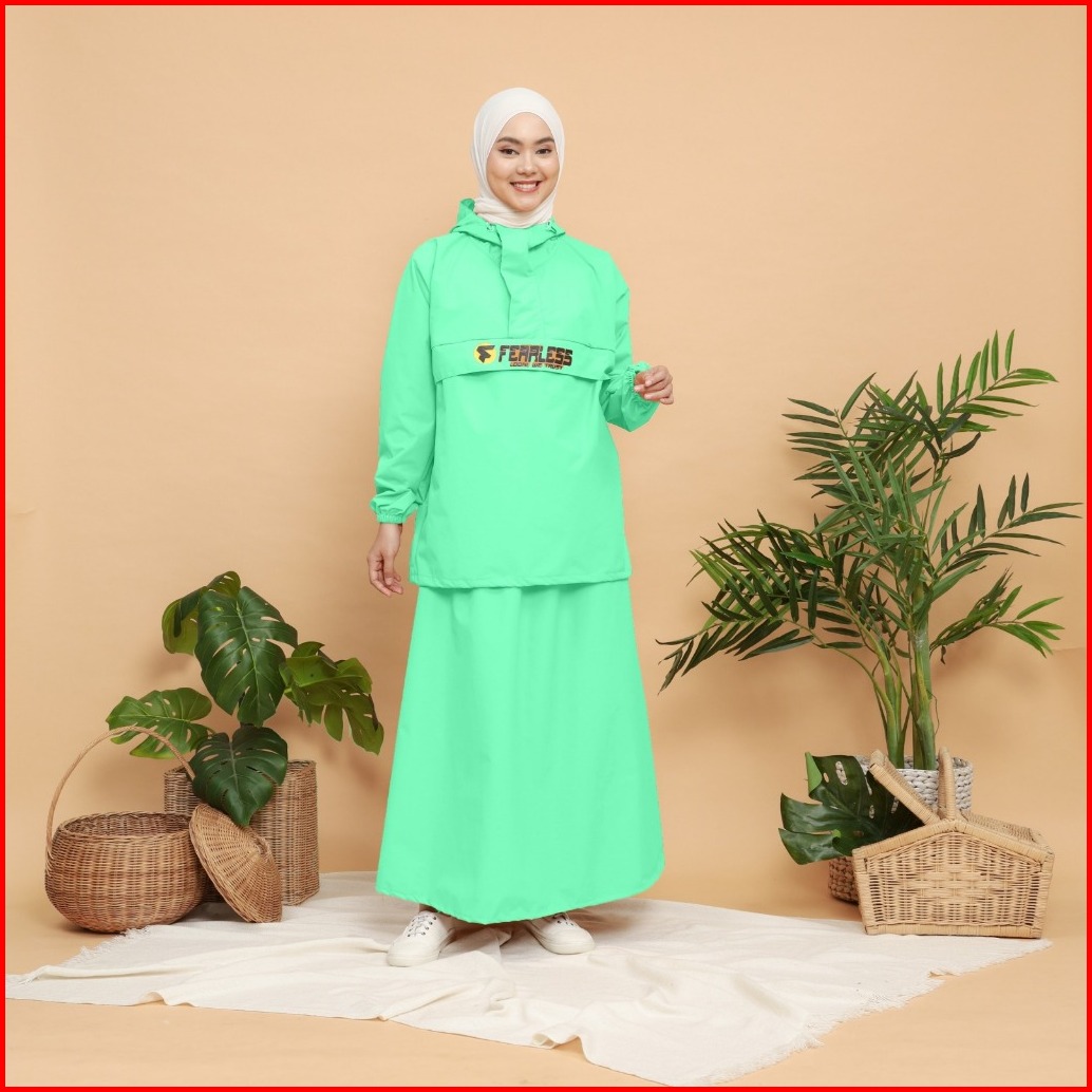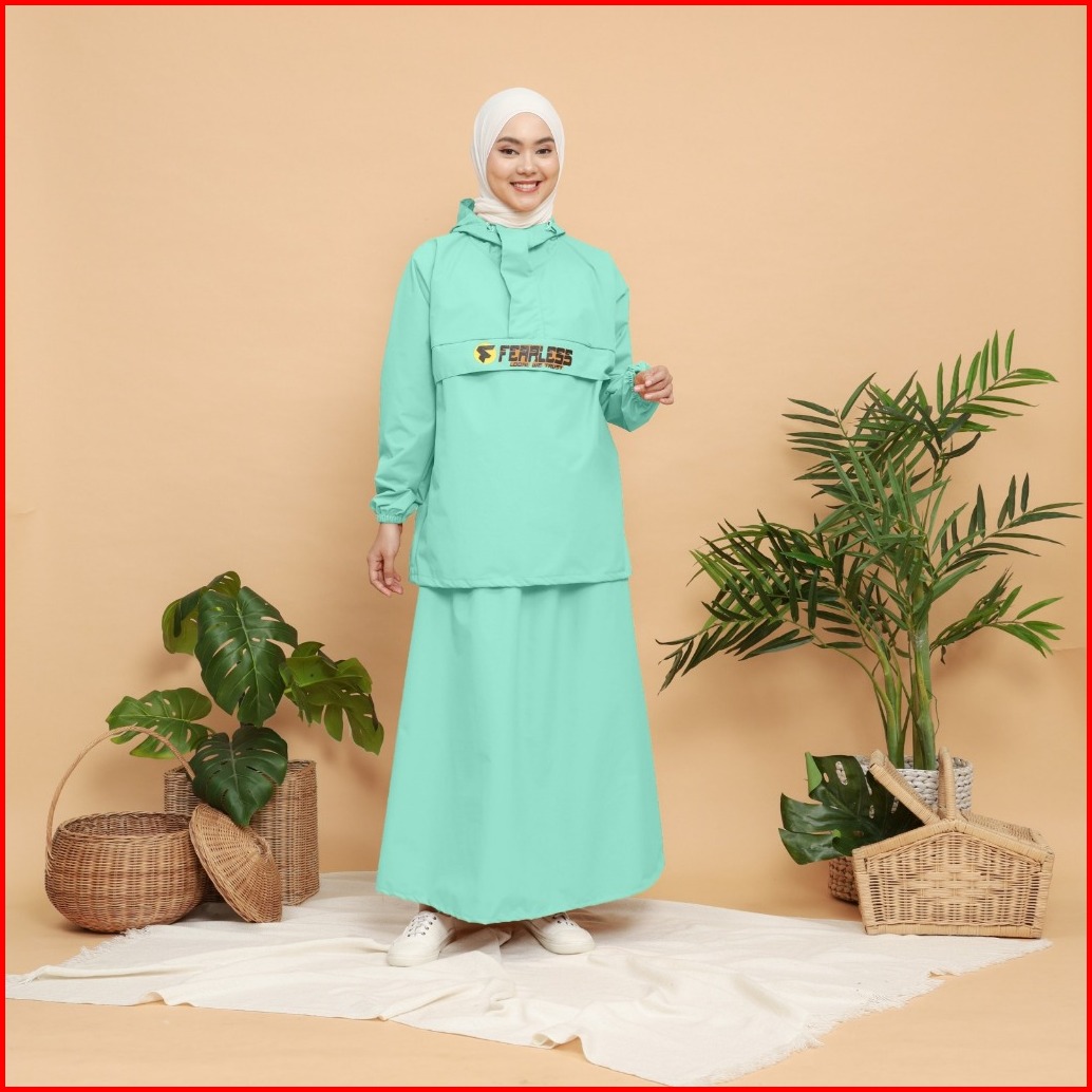 Jas Hujan Wanita Setelan Rok Saku Kangguru Dewasa