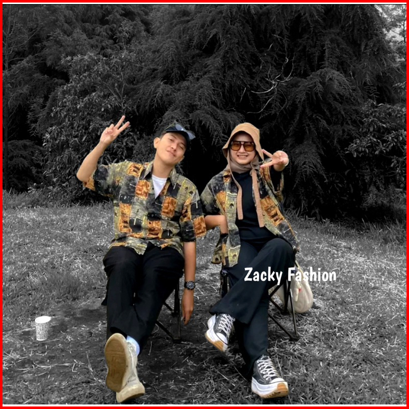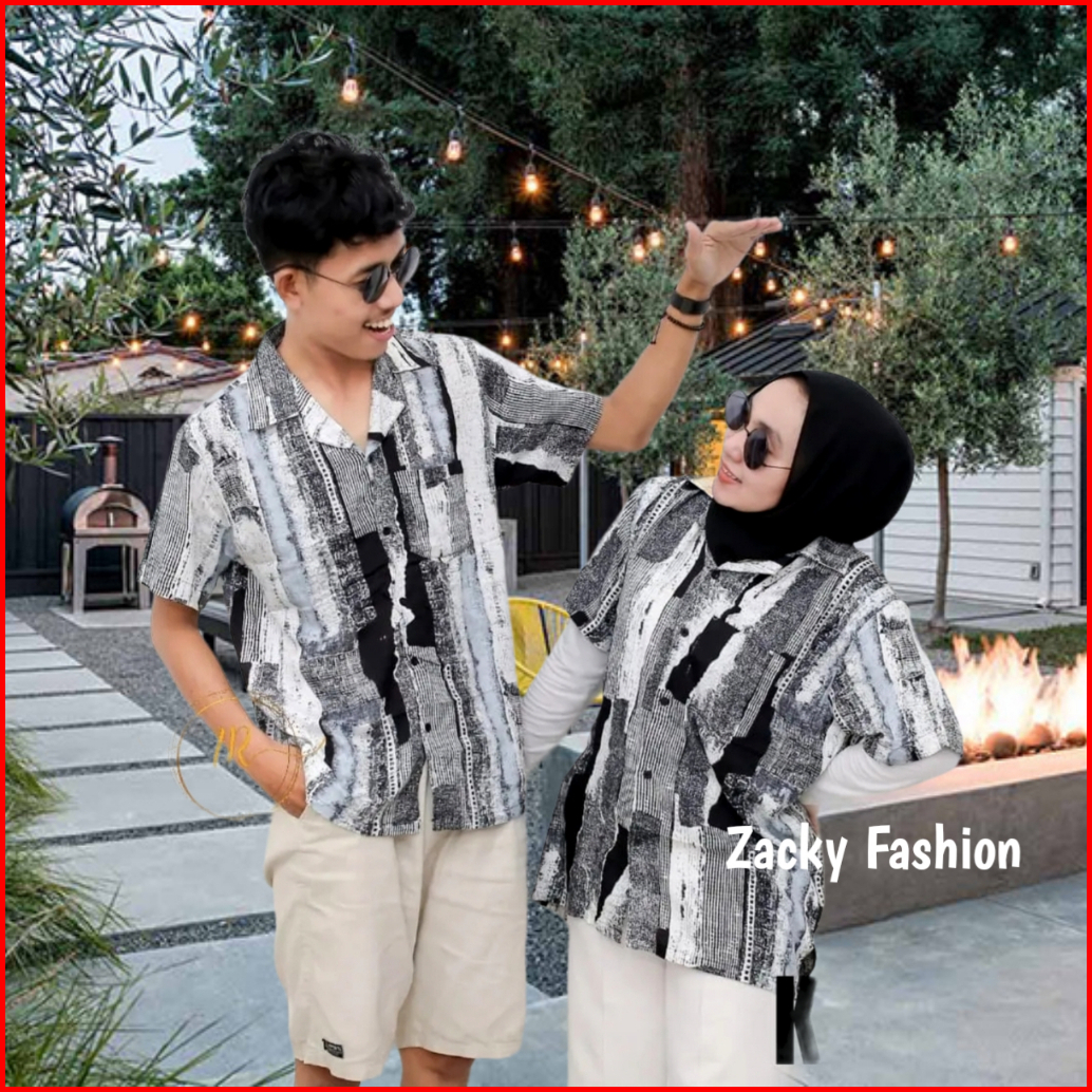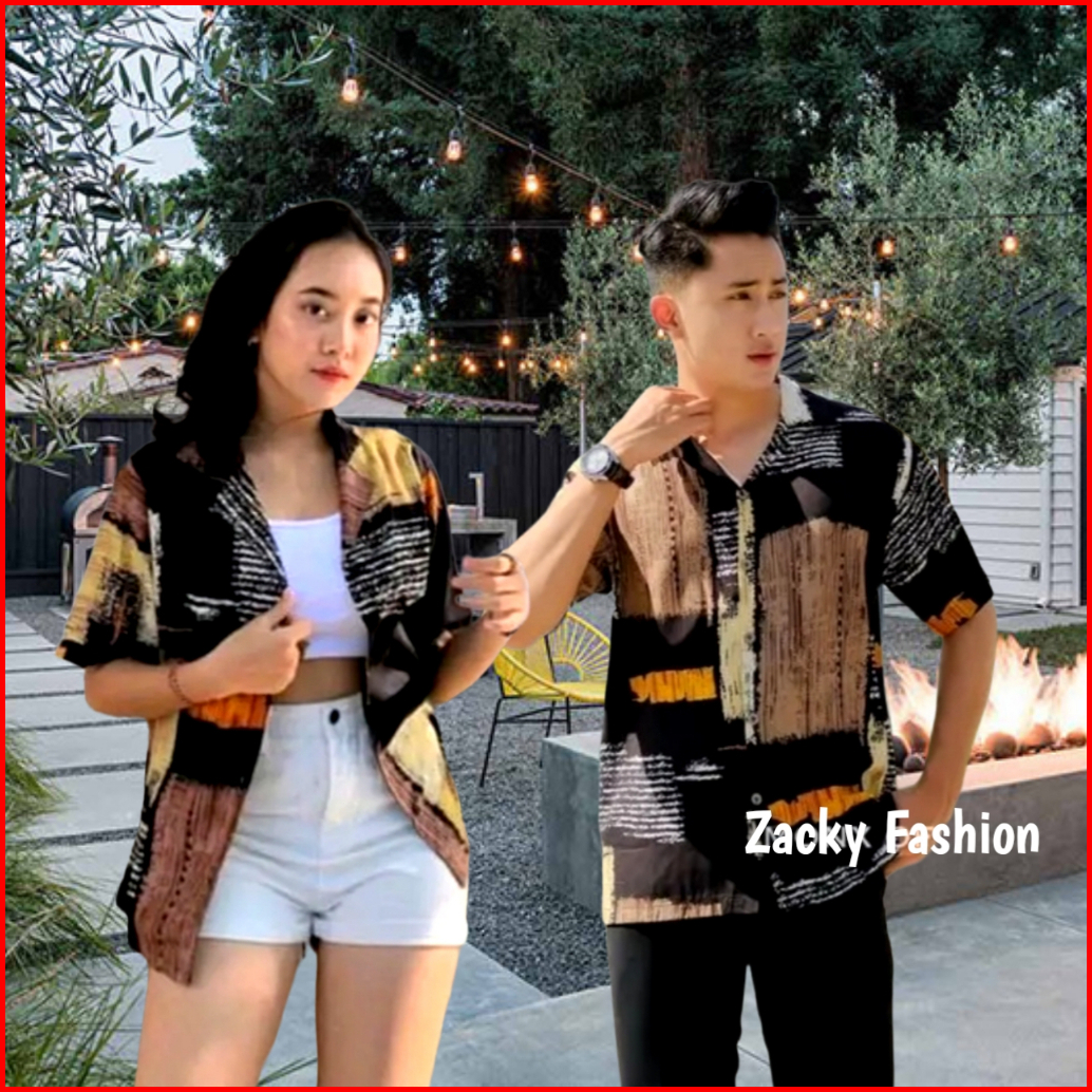 Kemeja Distro Couple Vintage Lengan Pendek V-neck Kasual Motif Abstrak Retro Hawai Korea Import Premium Super