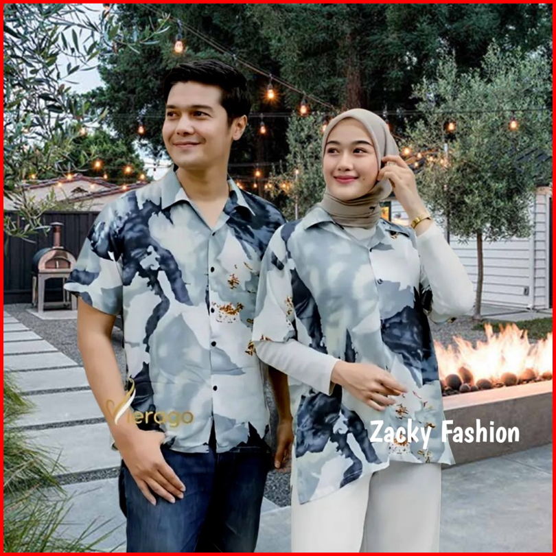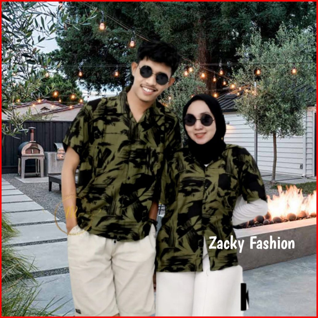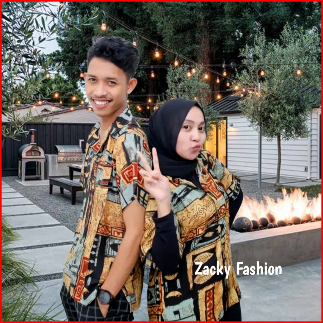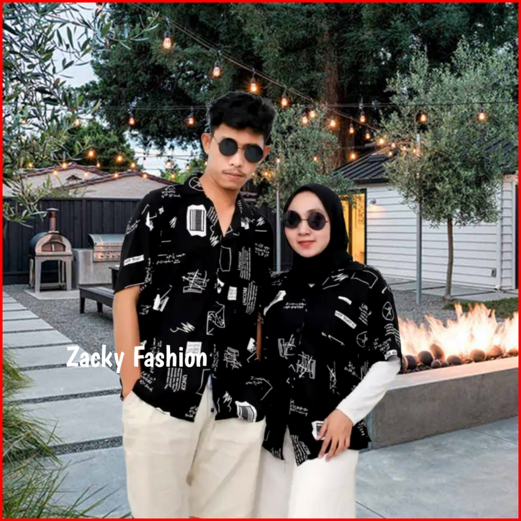 Kemeja Distro Couple Vintage Lengan Pendek V-neck Kasual Motif Abstrak Retro Hawai Korea Import Premium Super
