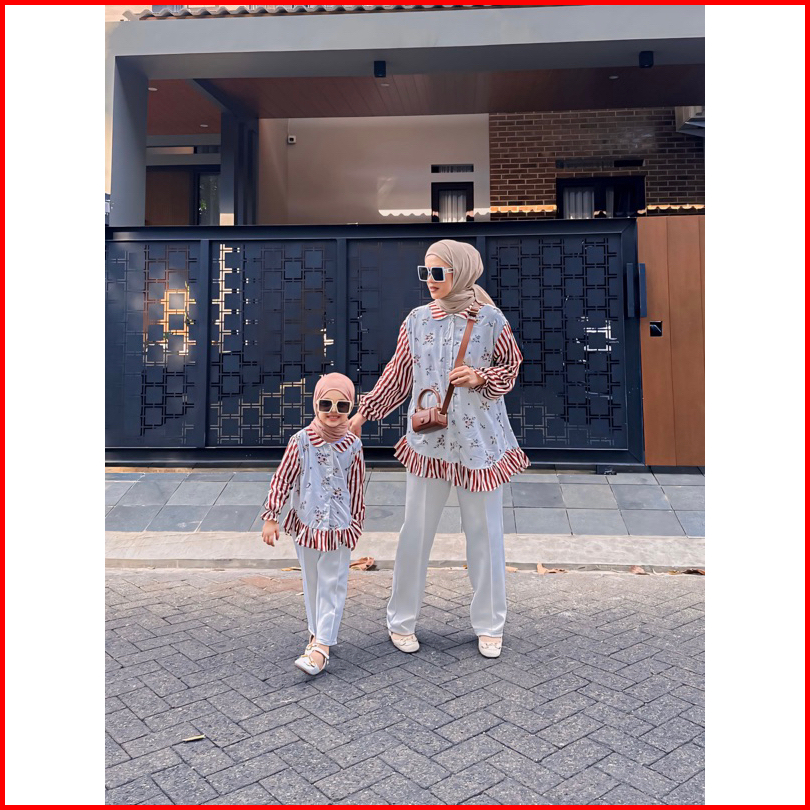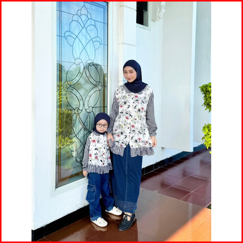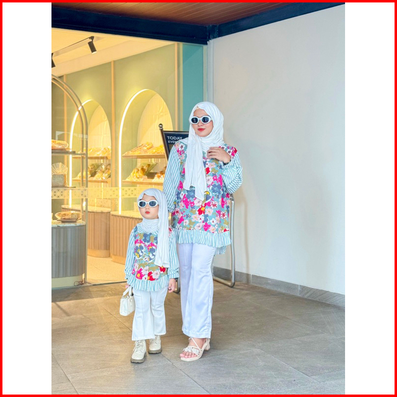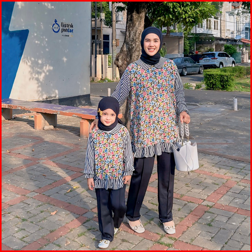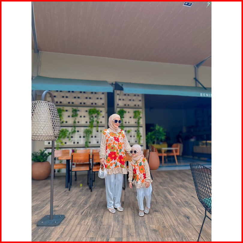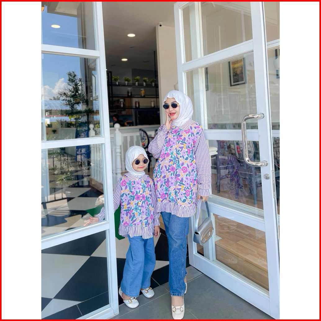 Ayraqu - Floris Kemeja Katun Couple Ibu Anak Kemeja Oversize