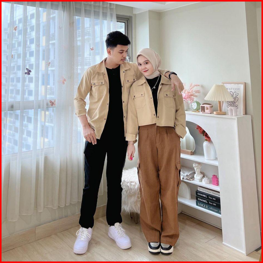 Kemeja Semi Parka Original Couple Top - Jaket Semi Parka Outer Couple Set Korean Style - Kemeja