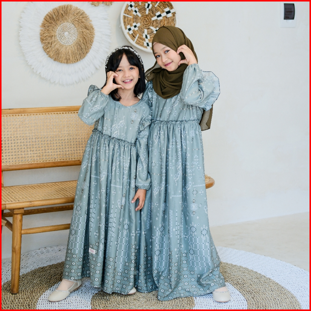 Gamis Couple Keluarga Seravina Sage Green Series By Baby Malika Set Gamis Koko Terbaru Lebaran2025
