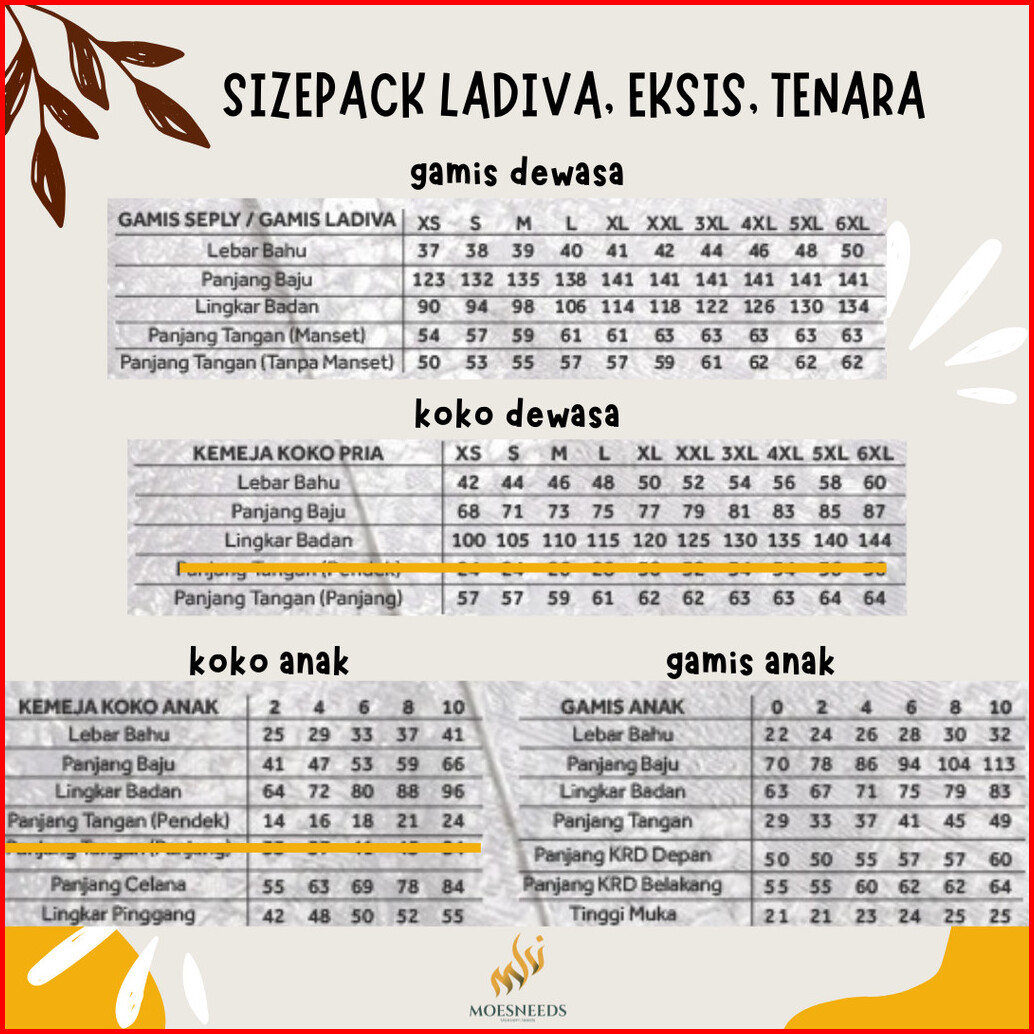 XS, S, M, L, XL, XXL, 3XL, 4XL, 5XL, 6XL, 0 (anak), 2 (anak), 4 (anak), 6 (anak), 8 (anak), 10 (anak)