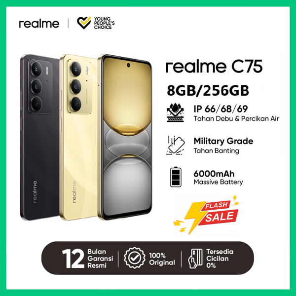 HP REALME C75 RAM 8 + 256GB GARANSI RESMI Baterai 6000mAh 45W Wired Helio G92 Max Prosesor Octa-core 2.0 GHz NFC