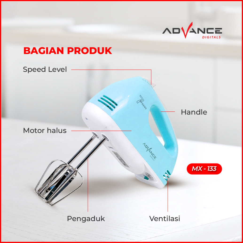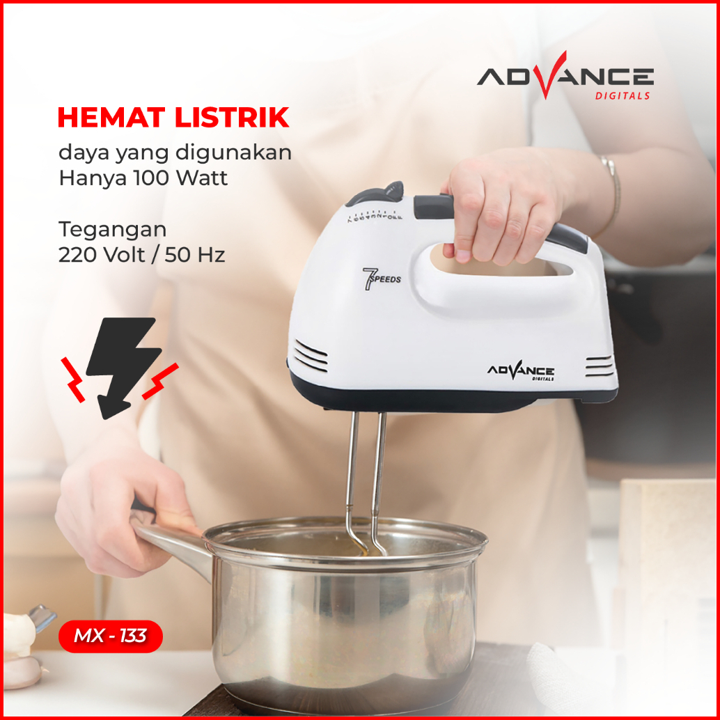 Advance Hand Mixer Mx-133 Alat Pengaduk Dengan 7 Kecepatan Otomatis Garansi Resmi Advance 1 Tahun