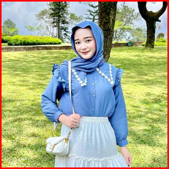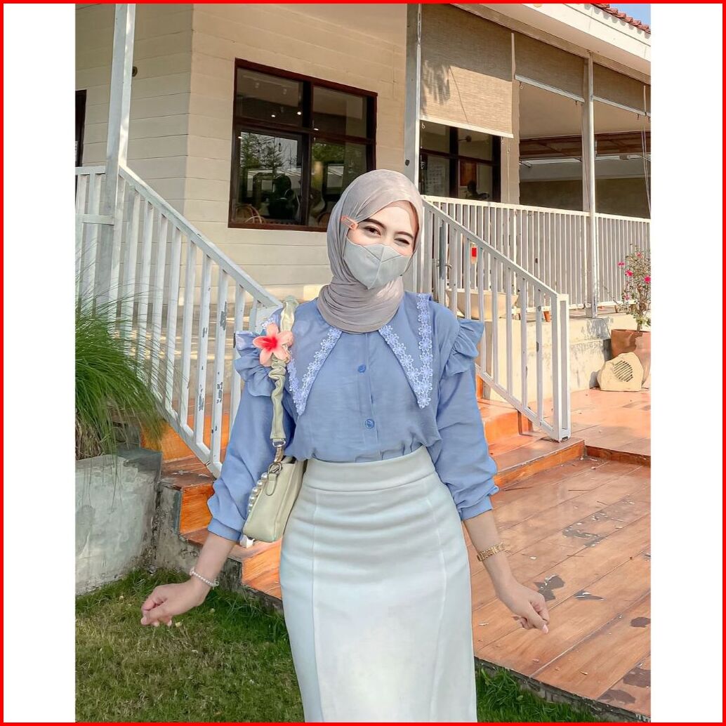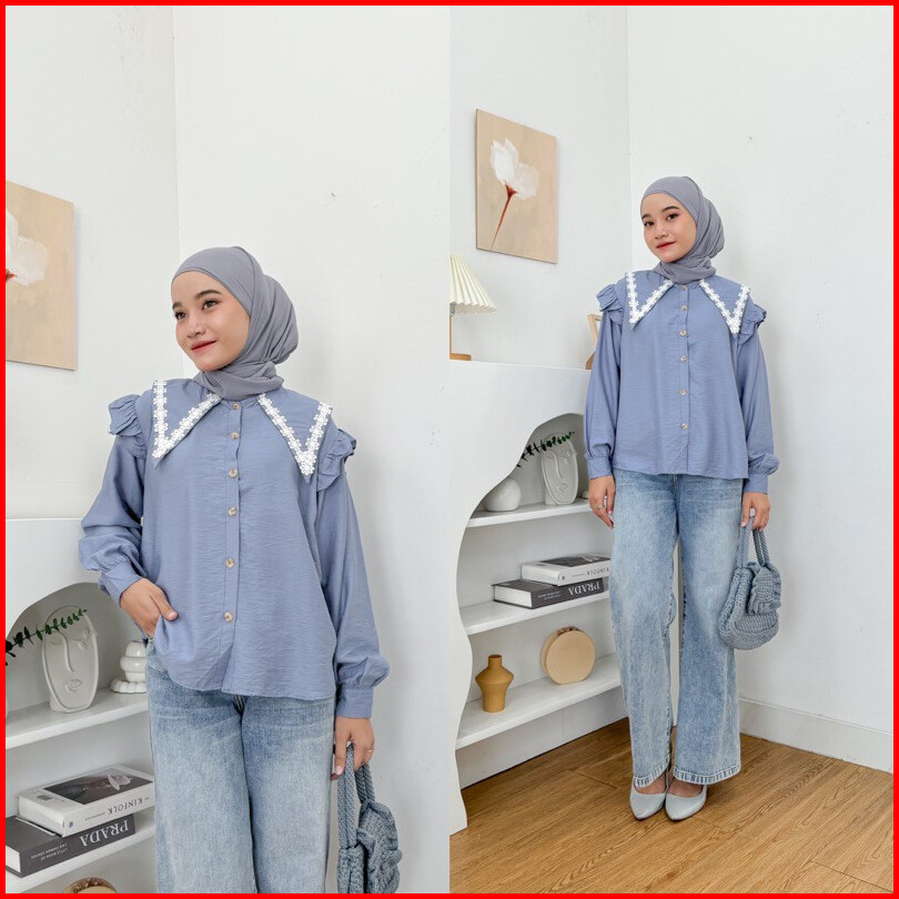 Blouse Wanita Lengan Panjang Kerah Renda Atasan Casual Bahan Polo Linen Korean Style - Leora
