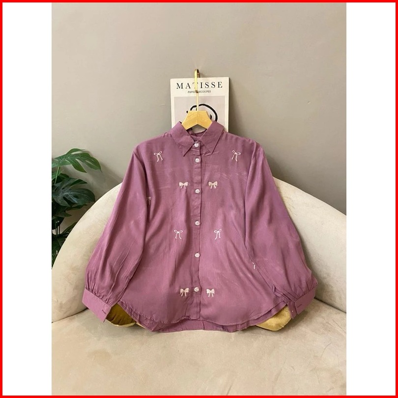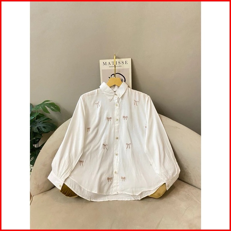 Kawai Kemeja Bordir Pita Coquette Wanita