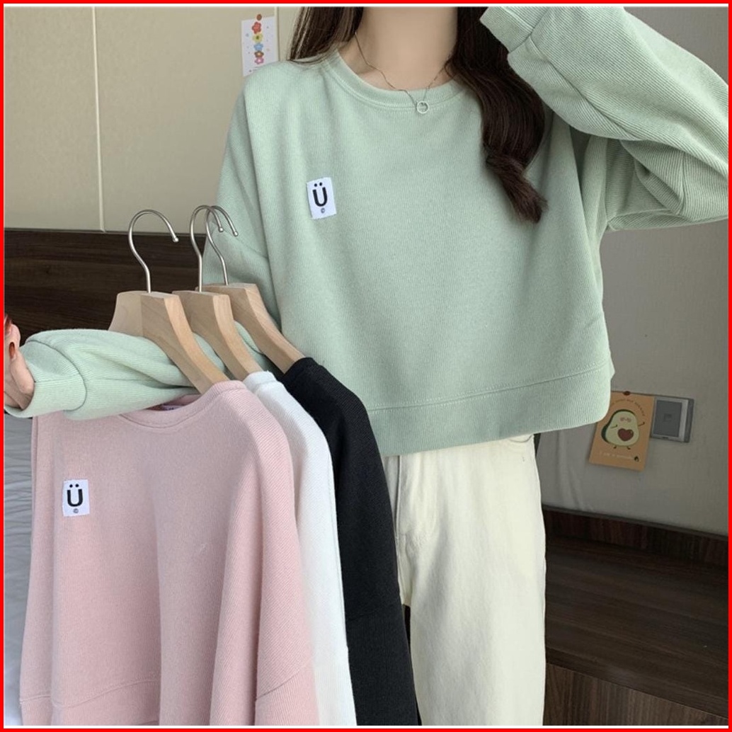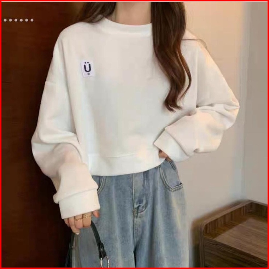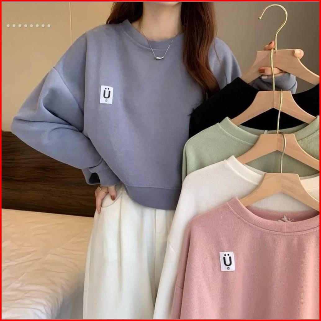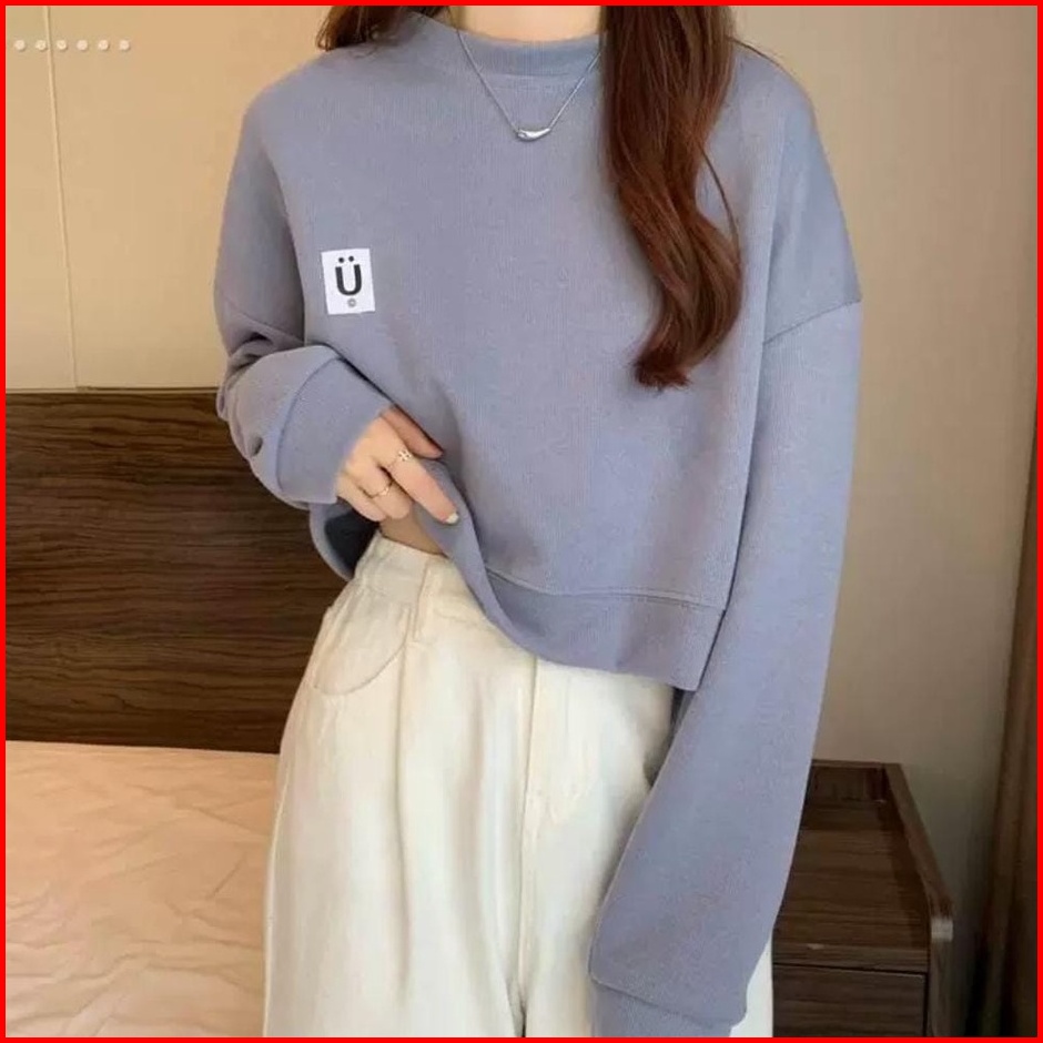 Basic U Crope Sweater Ala Korea Crewneck Sweatshirt Croope Kpop Wanita Kekinian Oversize Fashion Outfit Ootd Korean Styl