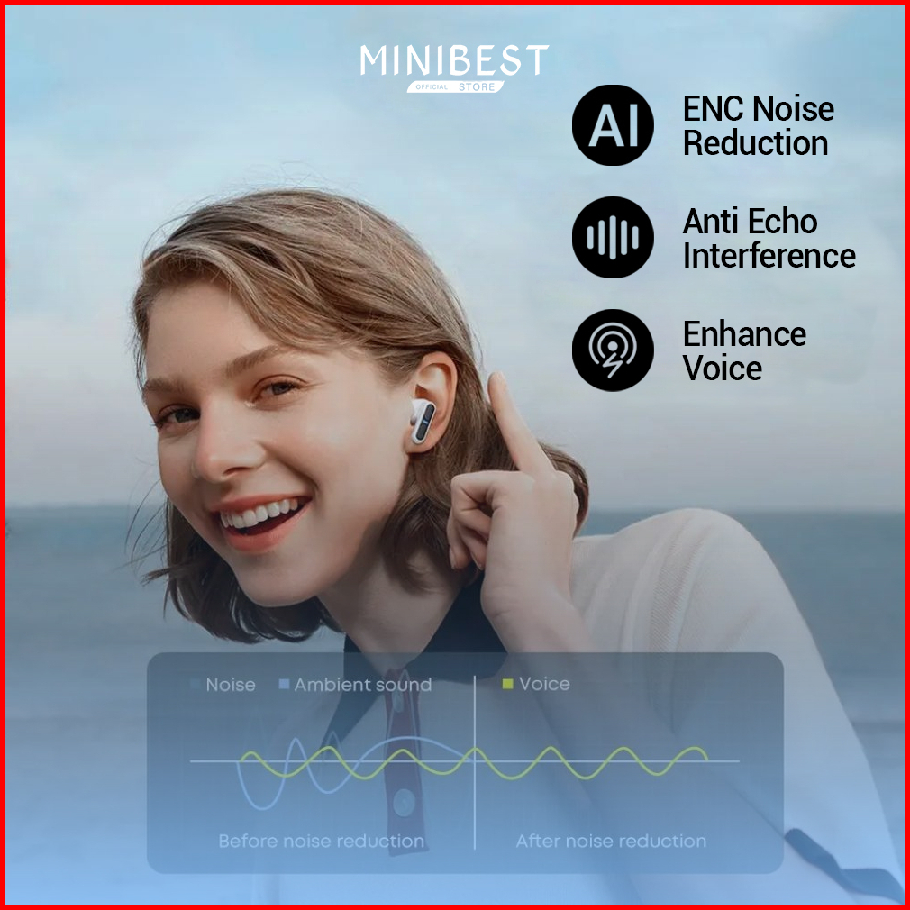 Minibest Mb02 Tws Earphone Headset Bluetooth V5.3 Enc Technology Futuristic Design