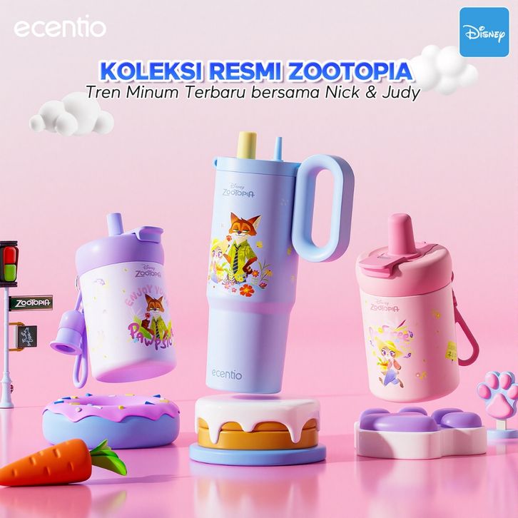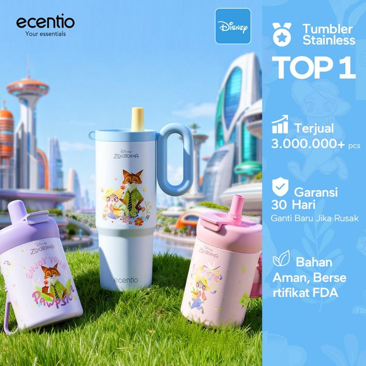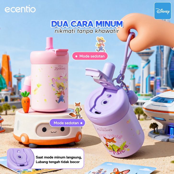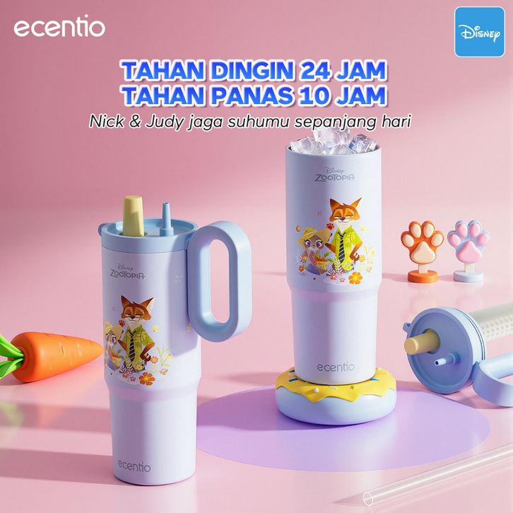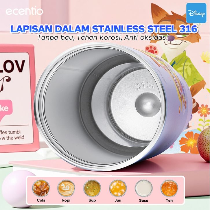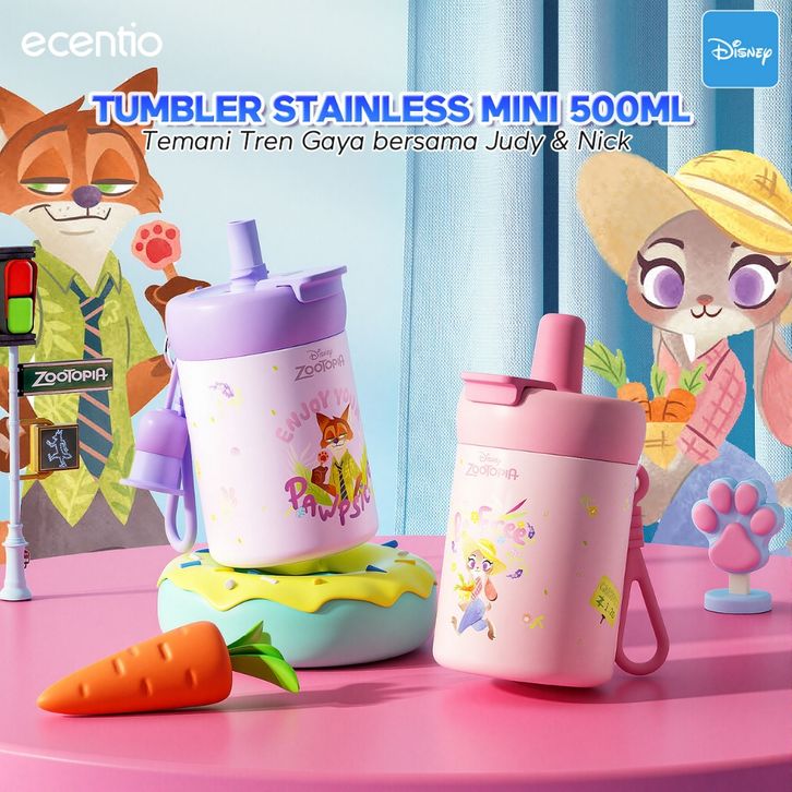 TUMBLER STAINLESS ECENTIO 316 DISNEY ZOOTOPIA 750ML 500ML TAHAN PANAS DINGIN 24 JAM BOTOL MINUM LUCU AESTHETIC
