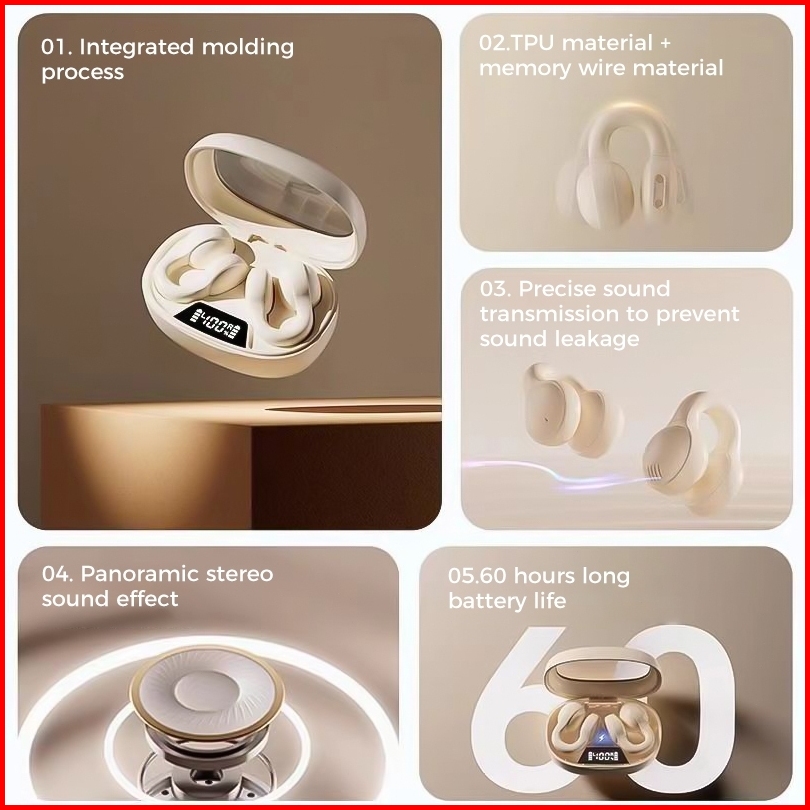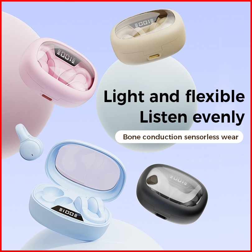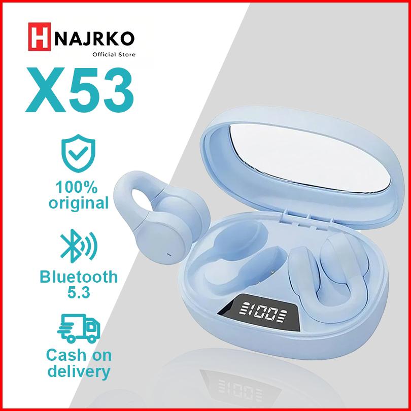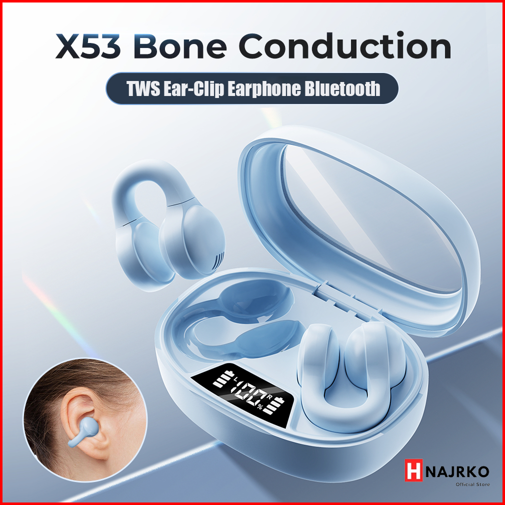 Hnajrko X53 Open Ear Bone Bluetooth Earphones Headset Bluetooth 5.4 Ear-clip Ipx5 Sport Headphones Noise Reduction Hifi