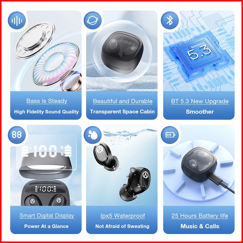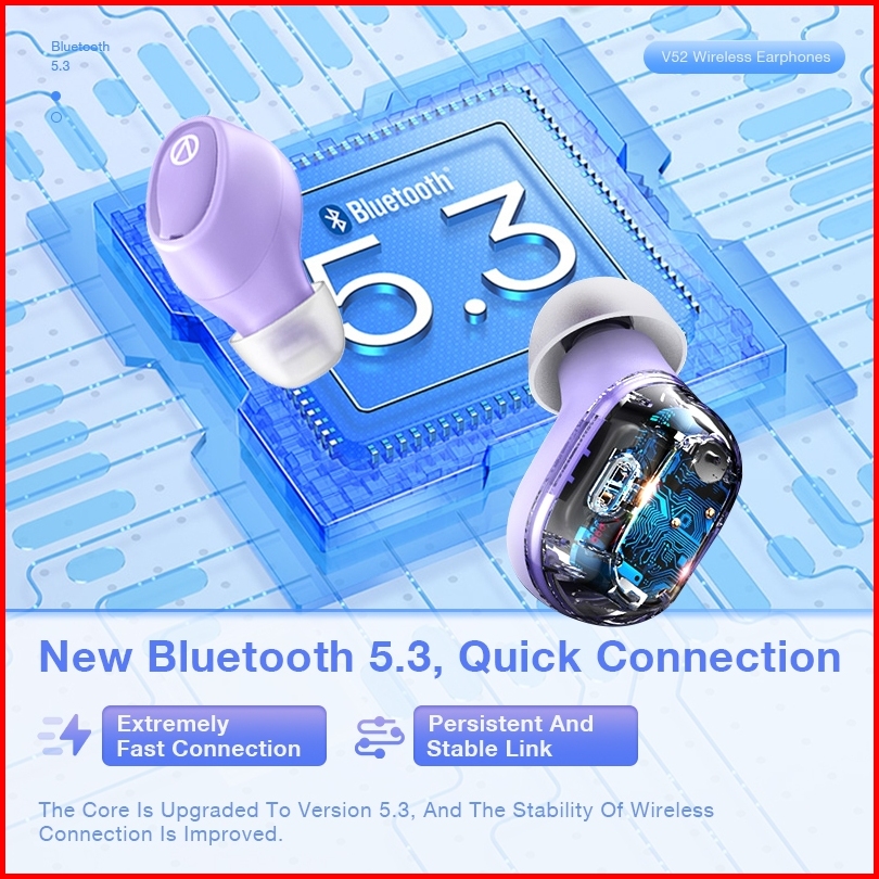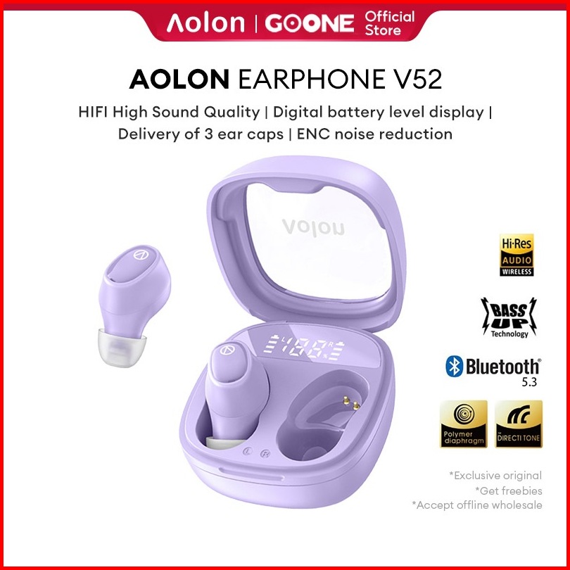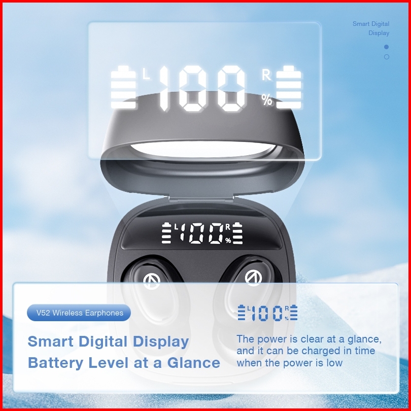 Goone V52 Earphone Bluetooth 5.3 Tws Tampilan Led Baterai Tahan Lama Sensor Sidik Jari Fingerprint Interchangeable Earph
