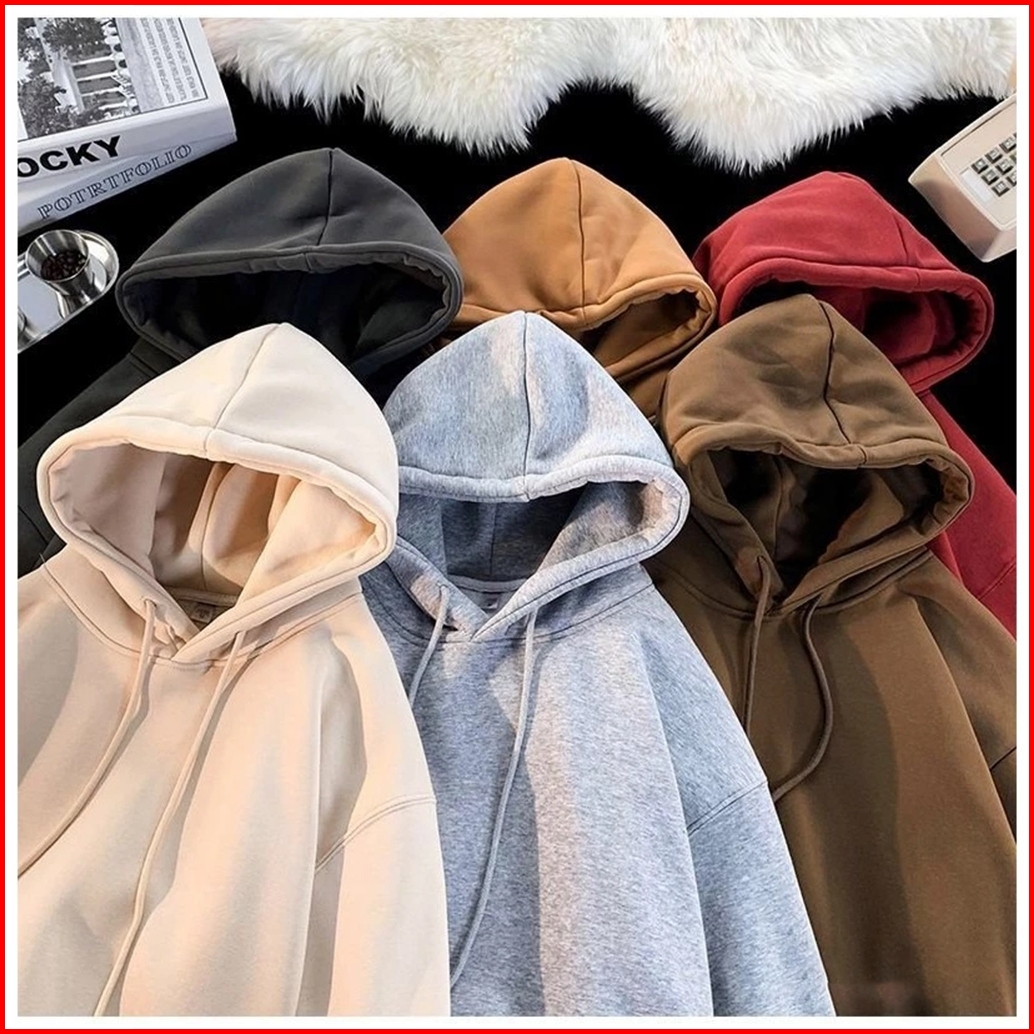 Harvional Sweater Polos Hoodie Jumper Basic Tudung Keren Korean Tebal Boxy Termurah Sma Motor Couple