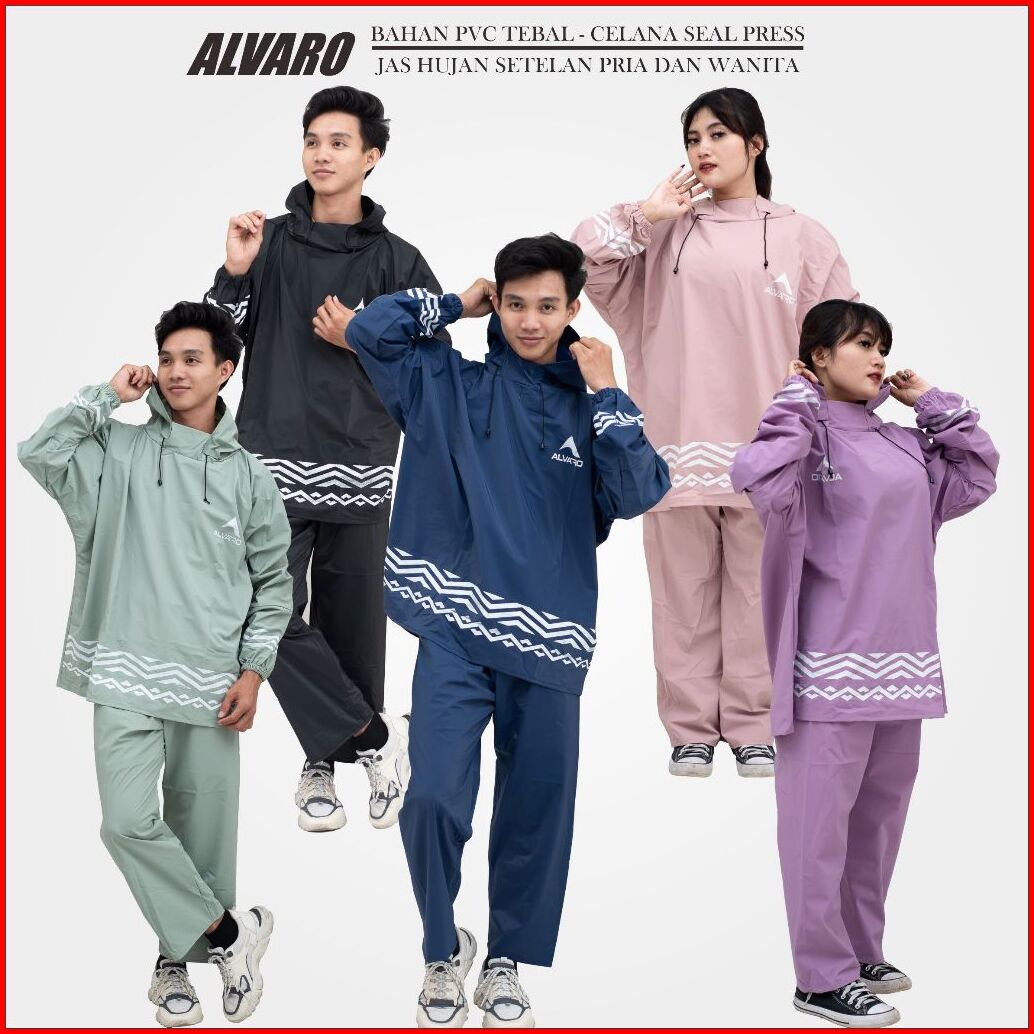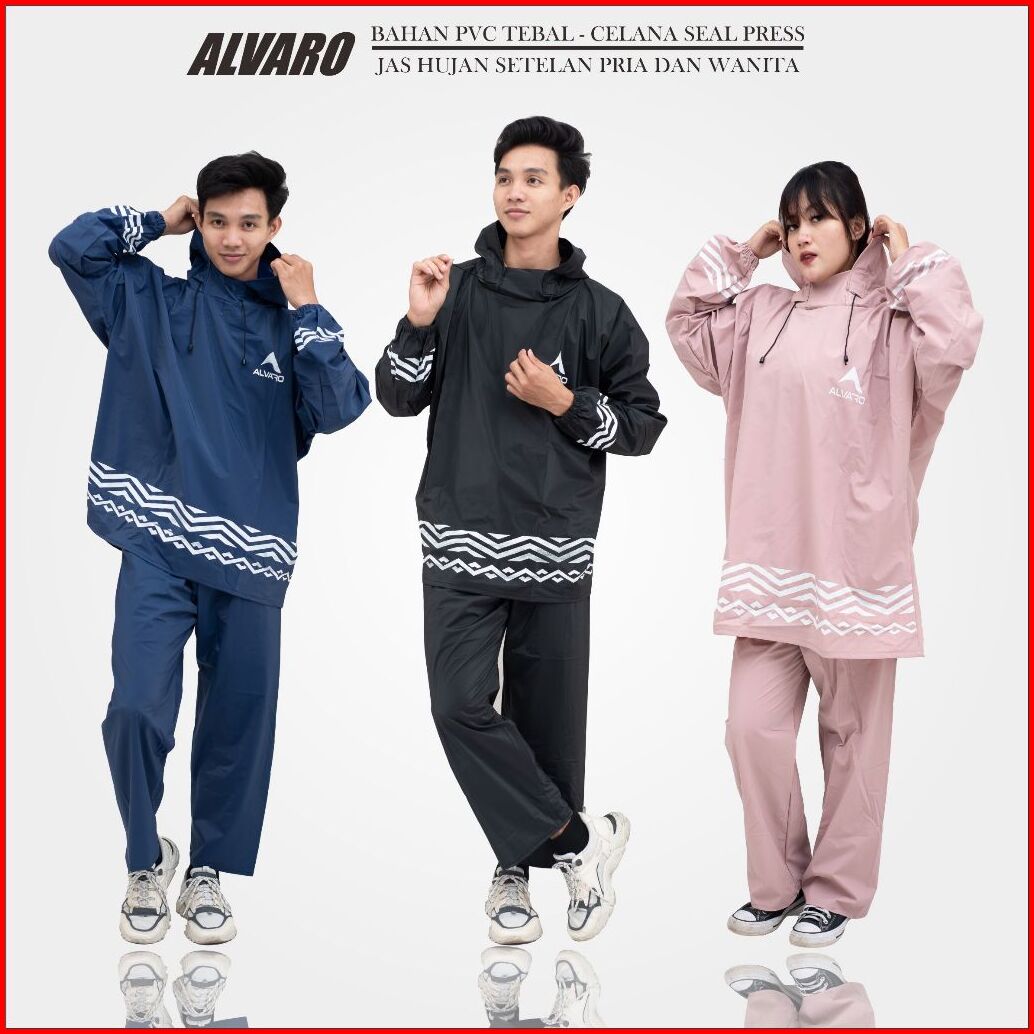 Jas Hujan Pria Wanita Mantel Setelan Celana Full Sealing Press Mantol Alvaro Bahan Tebal