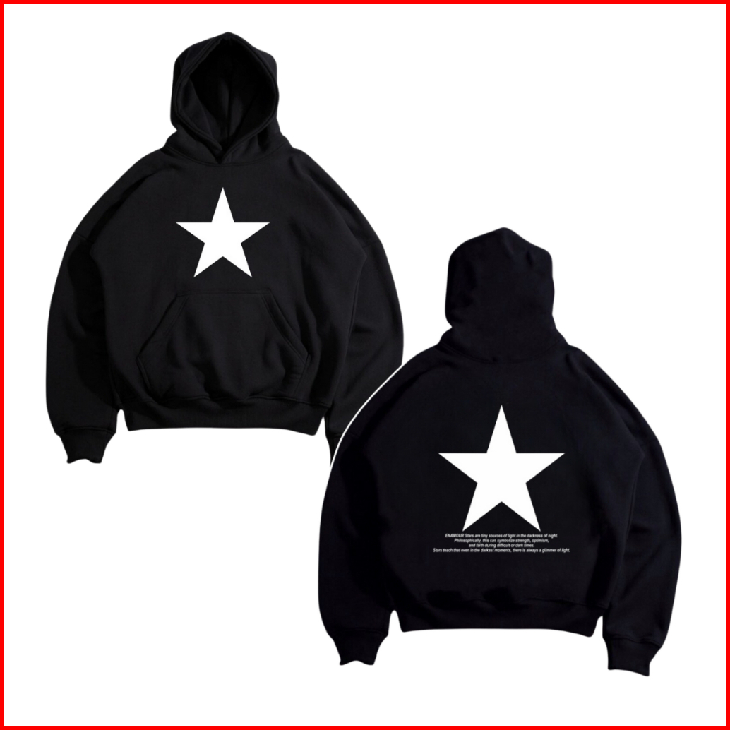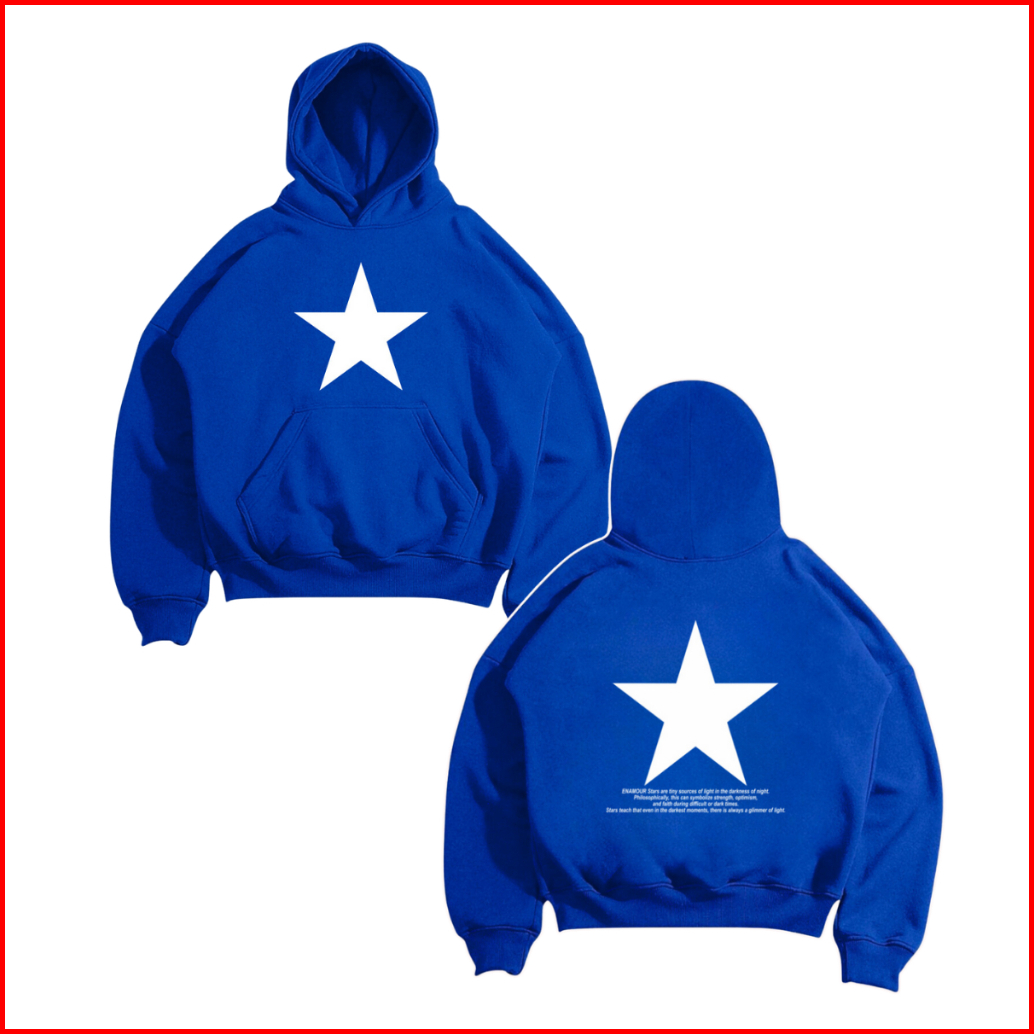 Hoodie Boxy Oversize Starboy Outfit Cowok Cewek Keren Fleece 280 Gsm Tebal Biru Distro Pria